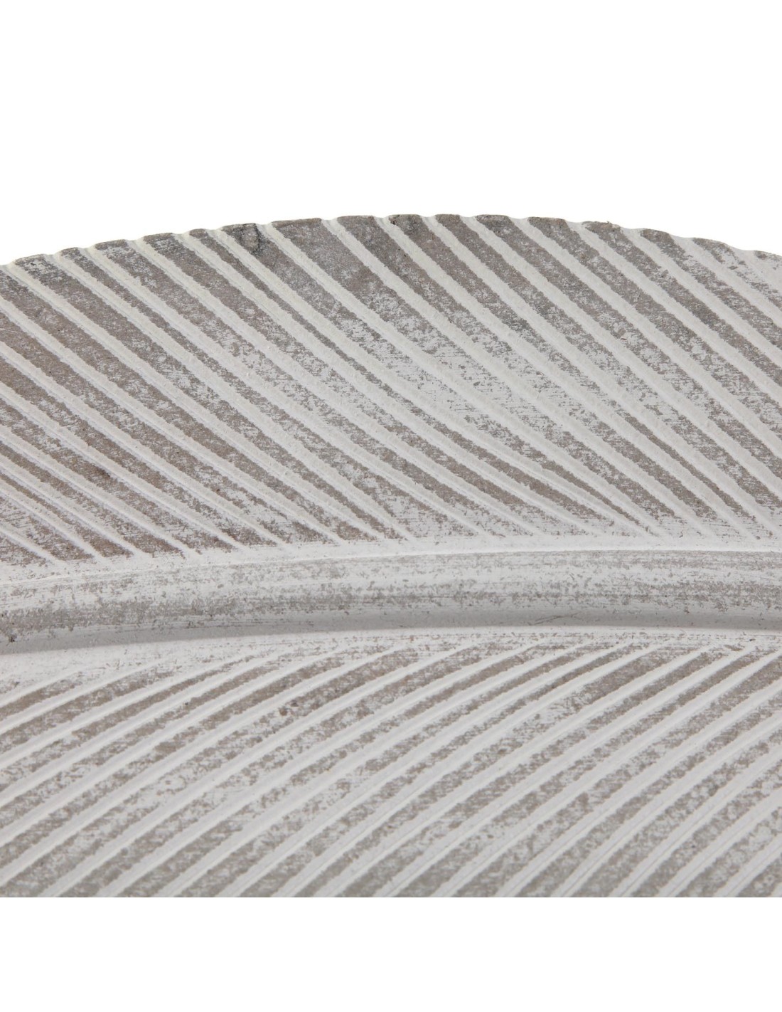 Aporta un toque natural y decorativo a tu hogar con esta bandeja de madera con diseño de hoja. Su acabado en color blanco desgastado le confiere un estilo rústico y elegante, ideal para complementar ambientes de inspiración natural o vintage.