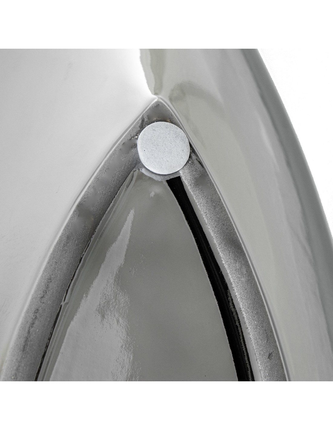 Este modelo está fabricado en cerámica con un acabado en color plata, un tono moderno y versátil que aporta luminosidad y un aire contemporáneo. Su diseño limpio y elegante lo convierte en una opción perfecta para ambientes modernos, minimalistas o incluso decoraciones más clásicas con un toque actual.
