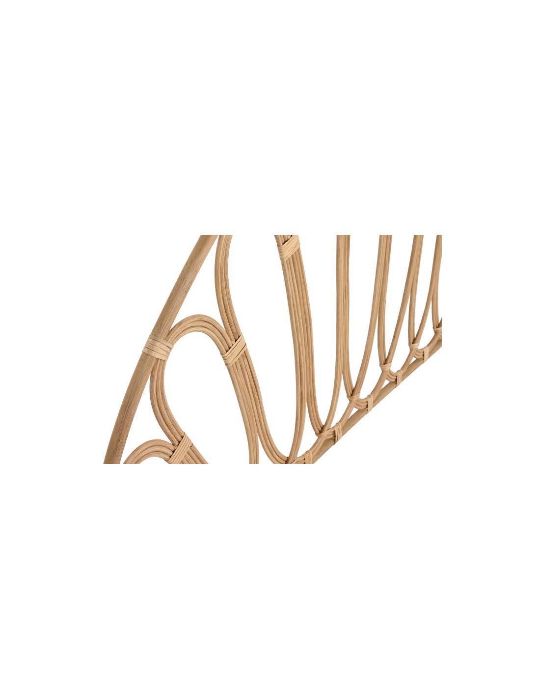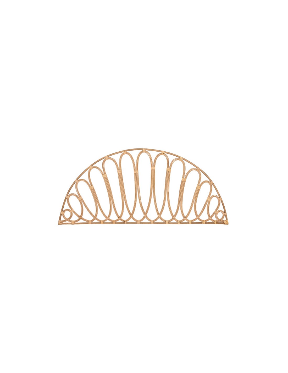 Fabricado en ratán y bambú en color natural, transmite calidez y armonía, creando un ambiente relajante y acogedor. Su diseño en forma de medio círculo lo convierte en un elemento protagonista que eleva la decoración del espacio.