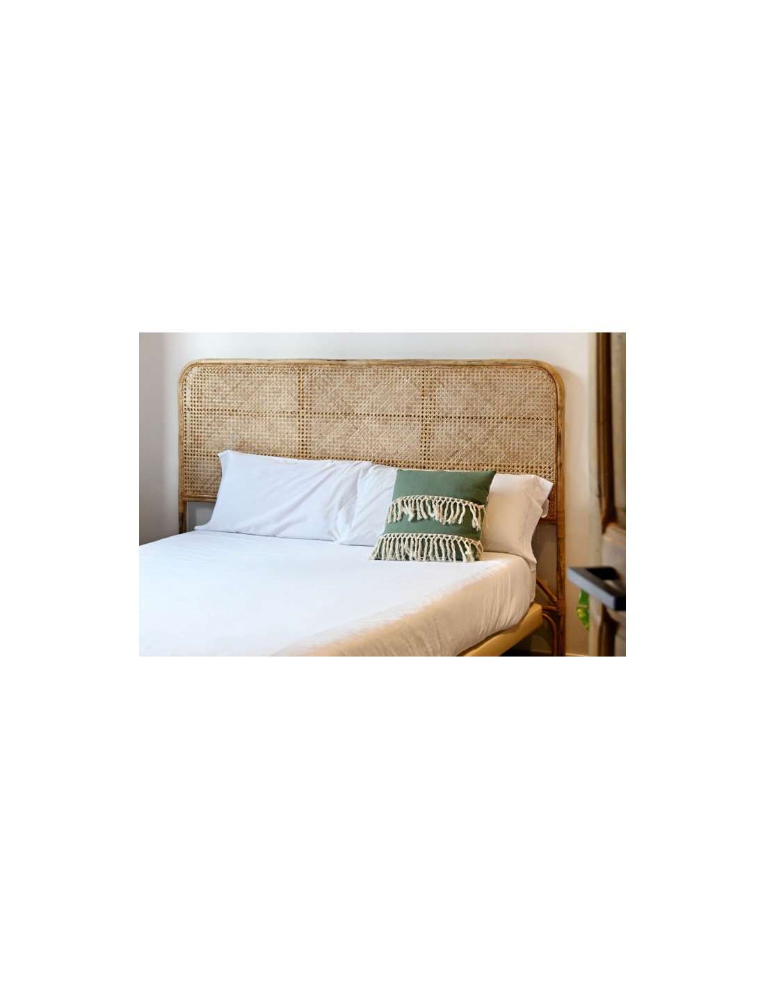 Fabricado en ratán en color natural, este cabecero transmite calidez, textura y una estética ligera que encaja perfectamente en ambientes modernos y naturales. Su diseño elevado crea una sensación envolvente que transforma el espacio.