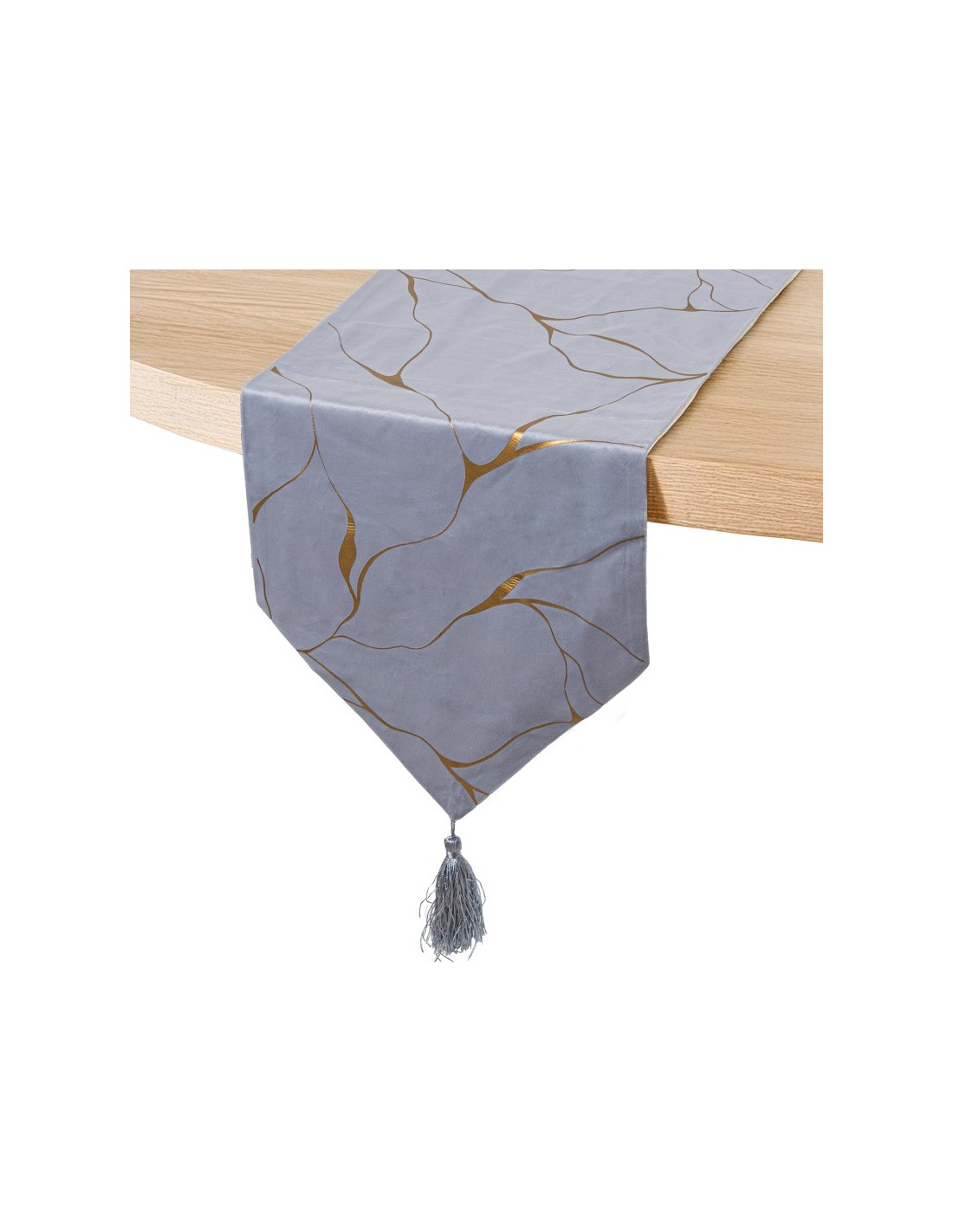 El Camino de Mesa en Gris y Oro es una opción ideal para quienes buscan una decoración práctica y elegante.