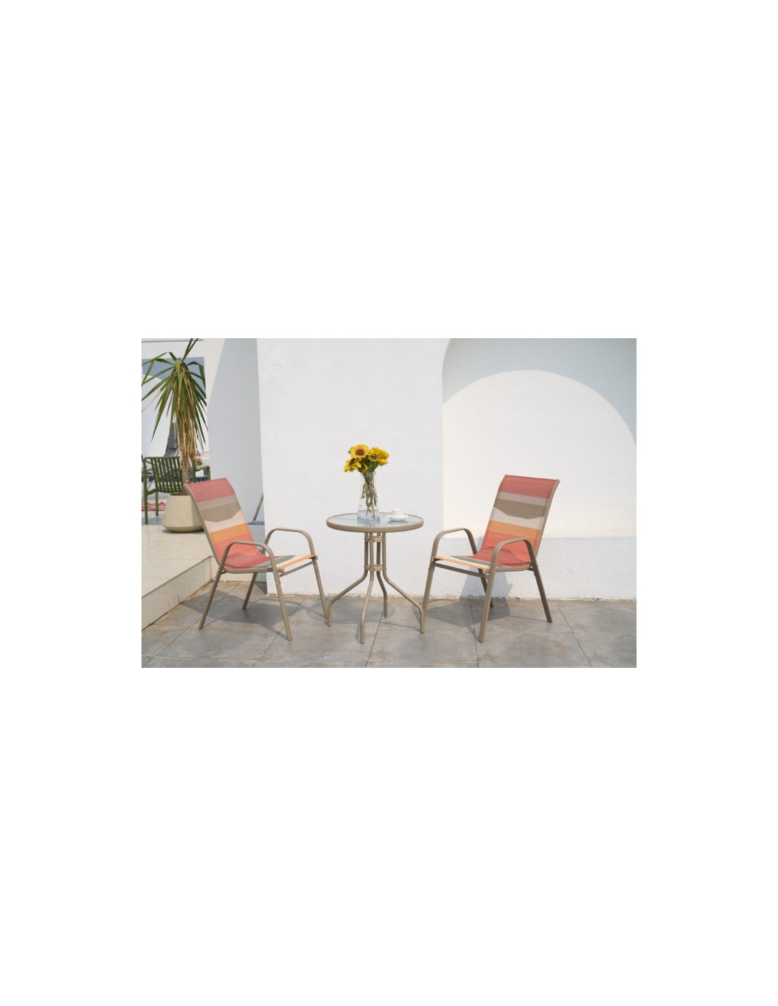 Este conjunto es perfecto para desayunos al aire libre, momentos de relax o pequeñas reuniones, aportando comodidad y estilo a tu espacio exterior.