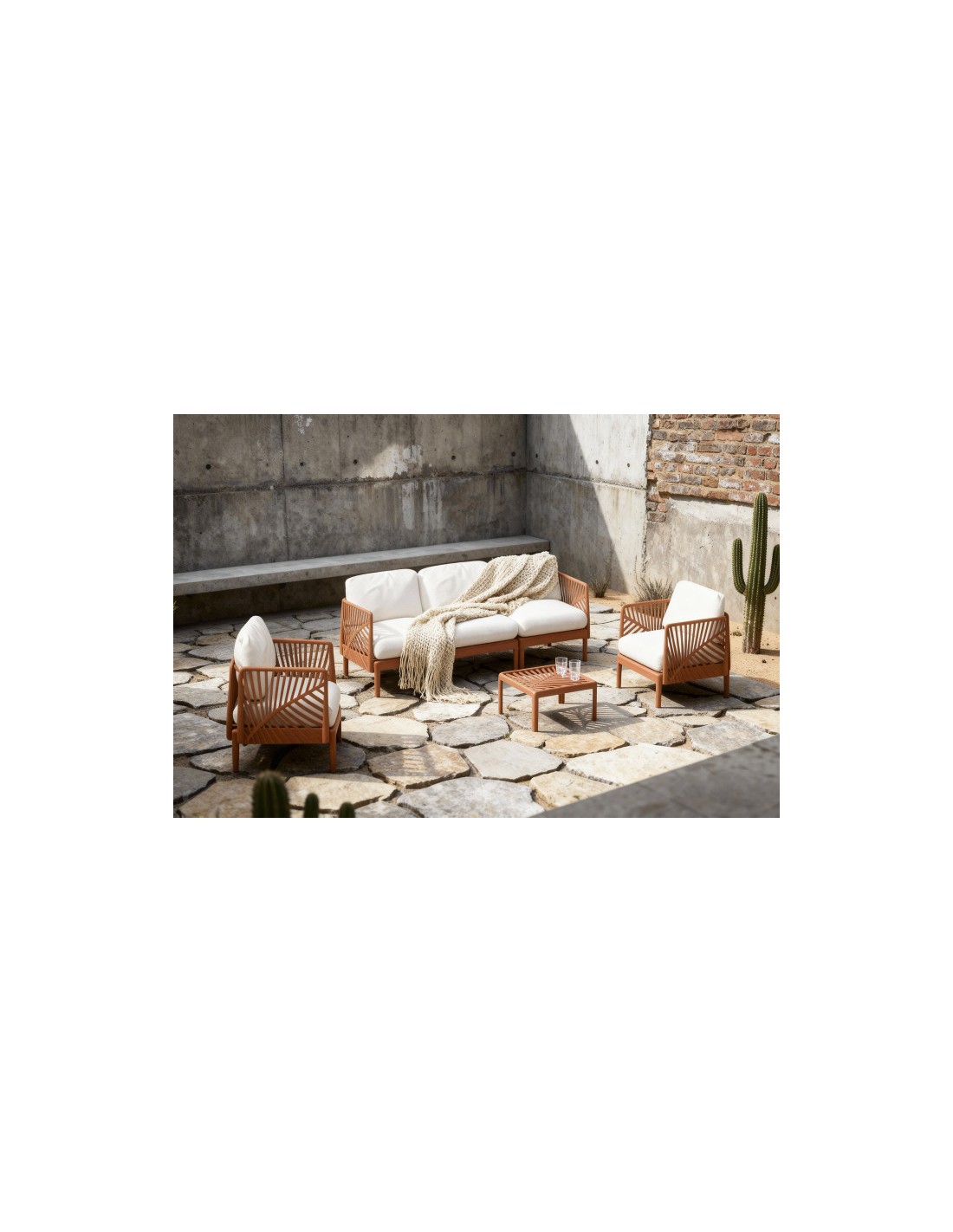 Gracias a su color cálido, este set aporta personalidad y estilo a cualquier espacio exterior.