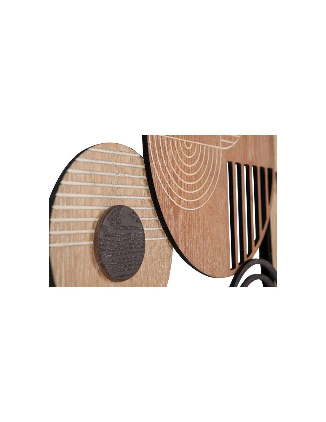 Esta elegante Decoración de pared de metal y madera está diseñada para convertirse en la protagonista de cualquier estancia de tu hogar. Fabricada con una sólida base metálica que aporta resistencia y durabilidad, combina a la perfección con las terminaciones en madera en tonos marrones y negros, creando un equilibrio visual muy atractivo y sofisticado. Su diseño destaca por la armonía de colores y materiales, que aportan calidez y personalidad a cualquier ambiente, integrándose fácilmente con diferentes estilos decorativos como industrial, moderno, nórdico o incluso rústico contemporáneo.