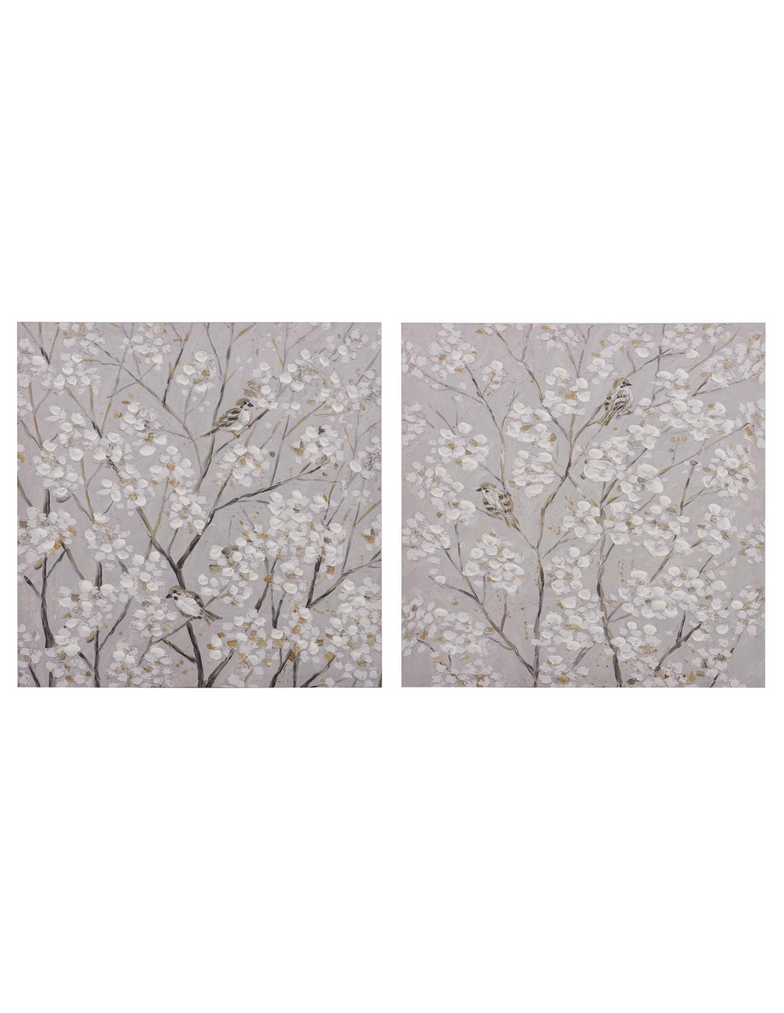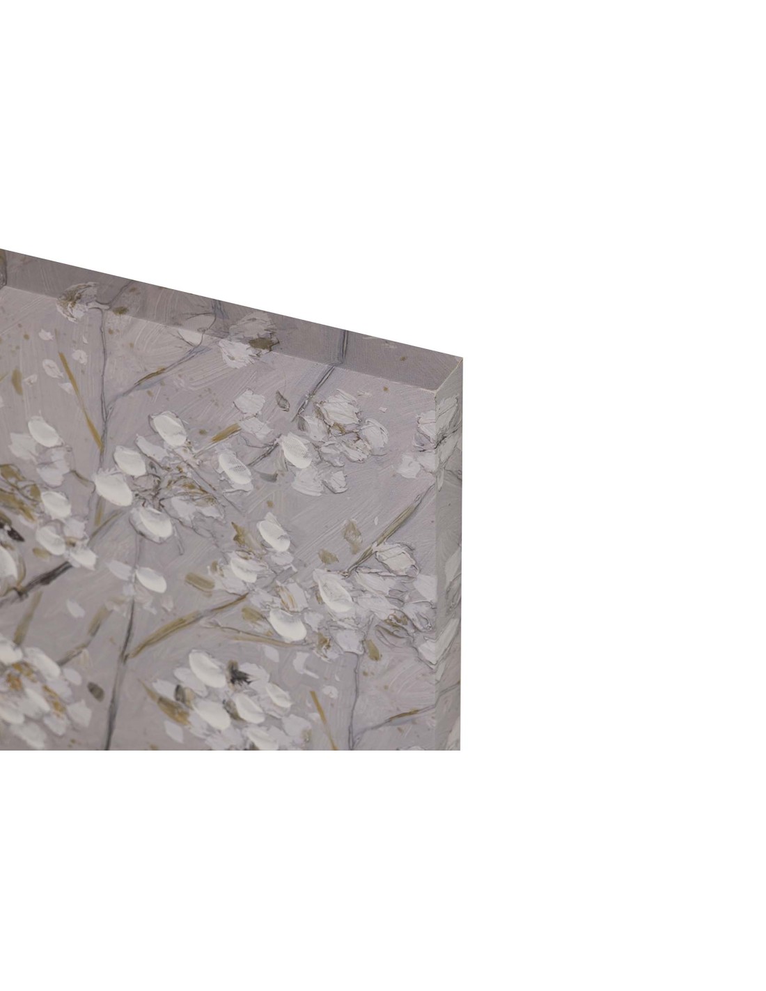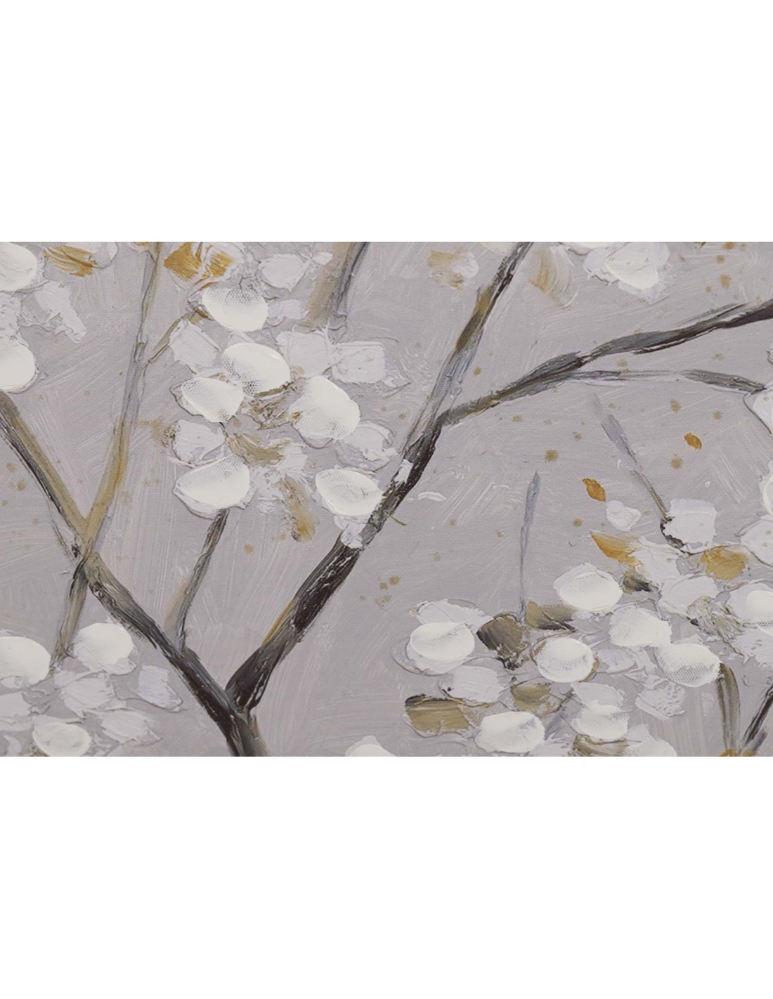 El Cuadro Ramas de Almendro es una pieza decorativa de gran belleza que aporta serenidad, estilo y un toque artístico a cualquier estancia. Se trata de un cuadro pintado sobre lienzo con un 40% de trabajo realizado a mano, que muestra delicadas ramas de almendro en tonos gris y blanco, realzadas con sutiles detalles en color dorado que aportan luz y sofisticación al conjunto.
