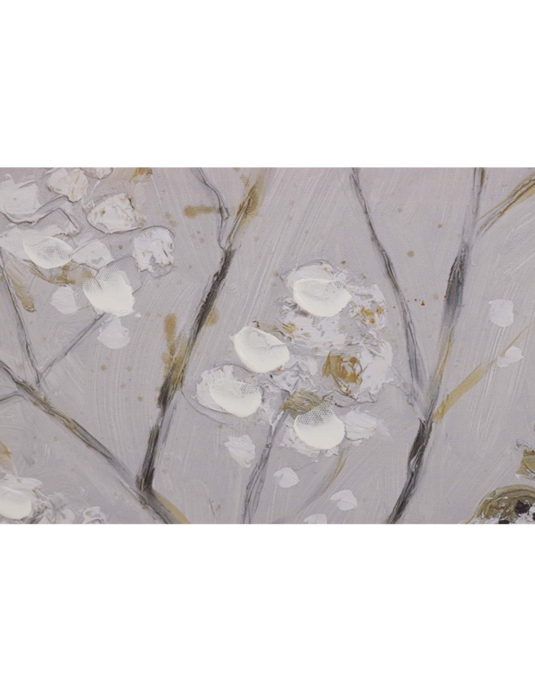 Una de las grandes ventajas de este cuadro es su capacidad para aportar luz y sensación de calma a cualquier estancia. Los tonos gris y blanco, combinados con los detalles dorados, crean un equilibrio perfecto entre suavidad y elegancia.