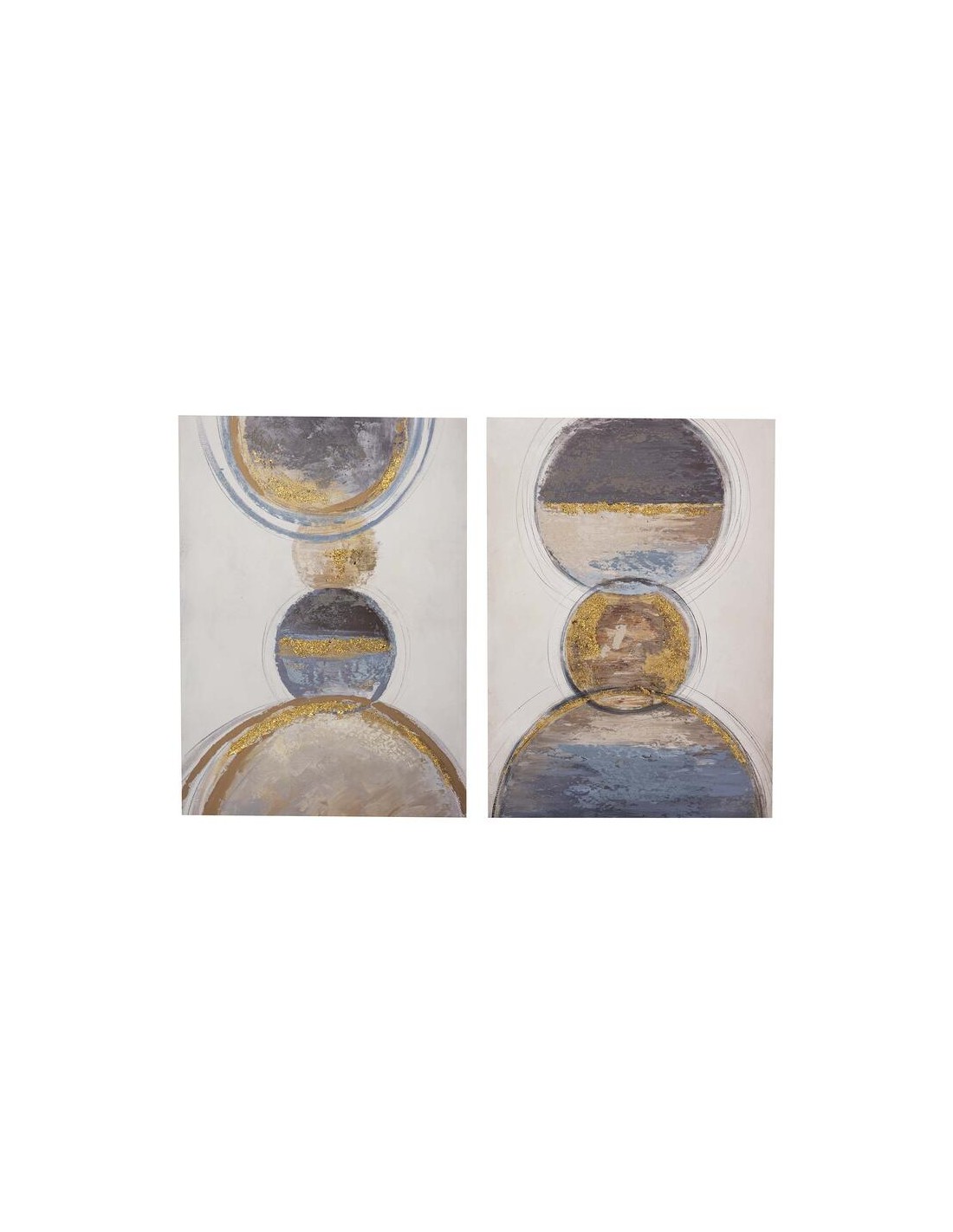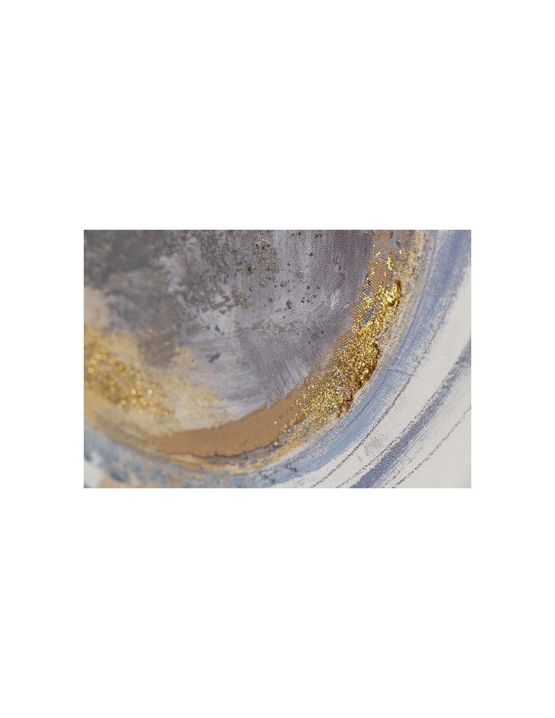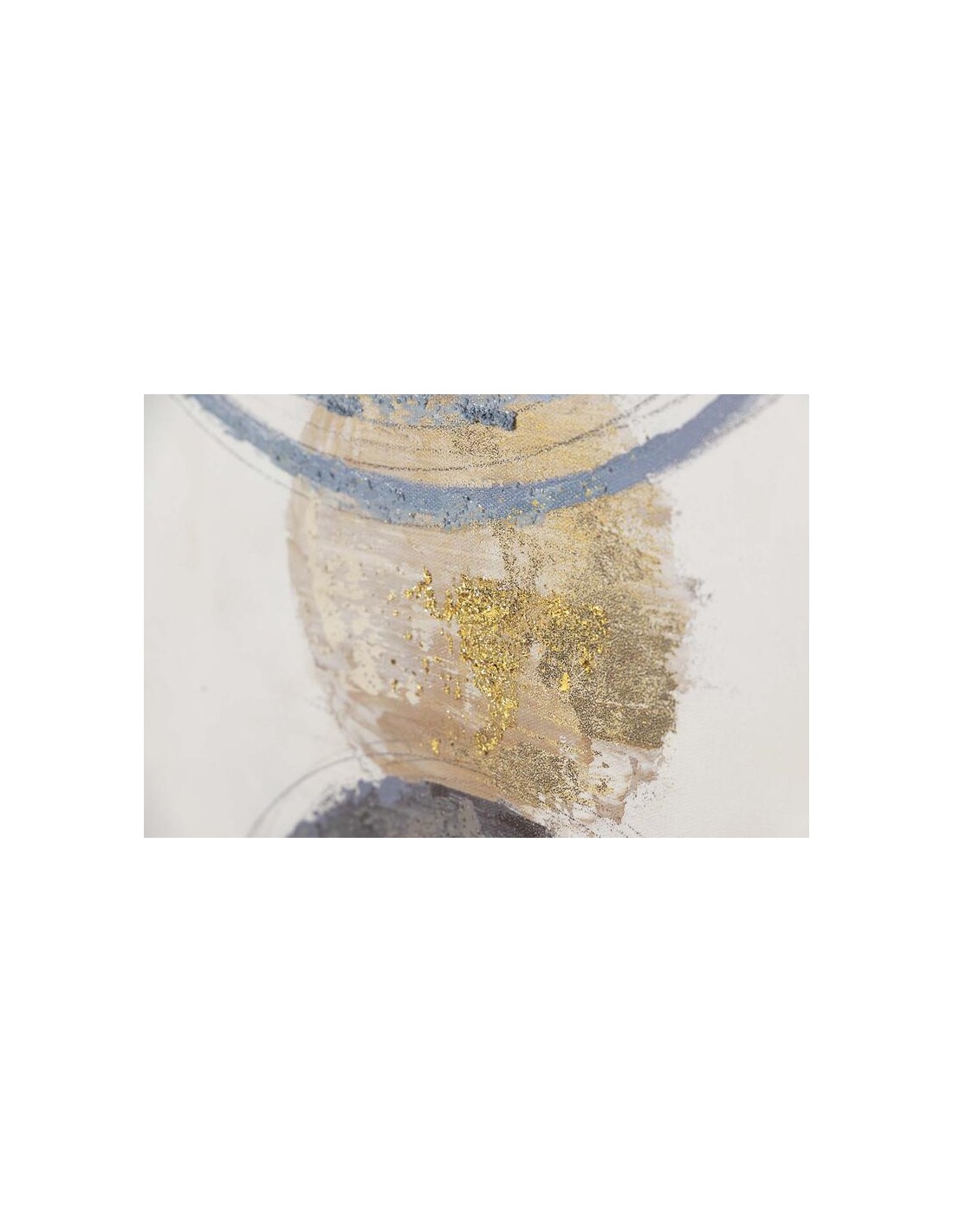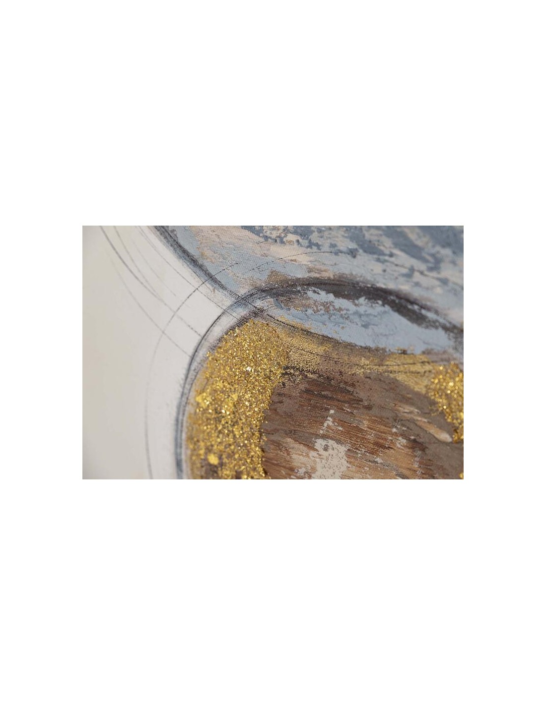 Cuadro pintado sobre lienzo con diseño abstracto en tonos azules y detalles en dorado, una combinación elegante y muy actual que destaca por su estilo sofisticado y la armonía de sus colores. Esta pieza decorativa está trabajada con un 50% de pintura hecha a mano, lo que aporta textura real, profundidad visual y un acabado artesanal que lo convierte en una pieza especial para realzar la decoración de cualquier estancia. Las pinceladas manuales hacen que cada cuadro tenga matices únicos, dando como resultado un artículo con mayor valor estético y una presencia mucho más atractiva en la pared. Sus medidas de 50 x 70 cm lo hacen ideal tanto para espacios medianos como para rincones más estrechos, pudiendo colocarse en salones, recibidores, habitaciones, pasillos o incluso en oficinas o despachos, ya que su estética relajante en azul transmite calma, equilibrio y elegancia.