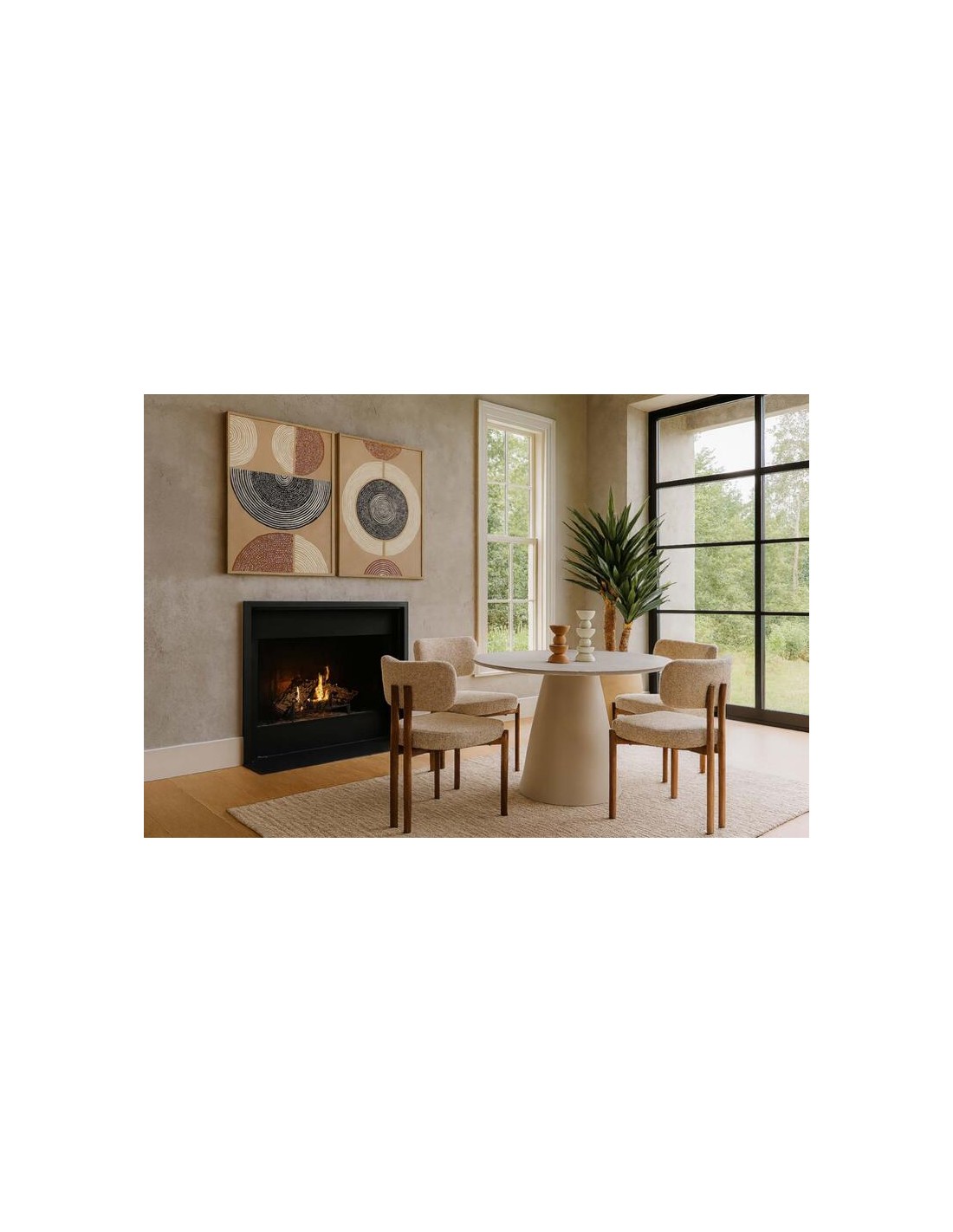 Cuadro decorativo con diseño moderno realizado con detalles en relieve, enmarcado con una elegante moldura de madera de abeto, que aporta calidez y un acabado natural que combina fácilmente con distintos estilos de decoración. Este cuadro mide 60x80 cm, un tamaño ideal para colocarlo en cualquier pared donde se quiera generar un punto focal visualmente atractivo. Este modelo destaca por su composición artística contemporánea, pensada para dar estilo, personalidad y un toque exclusivo al hogar.