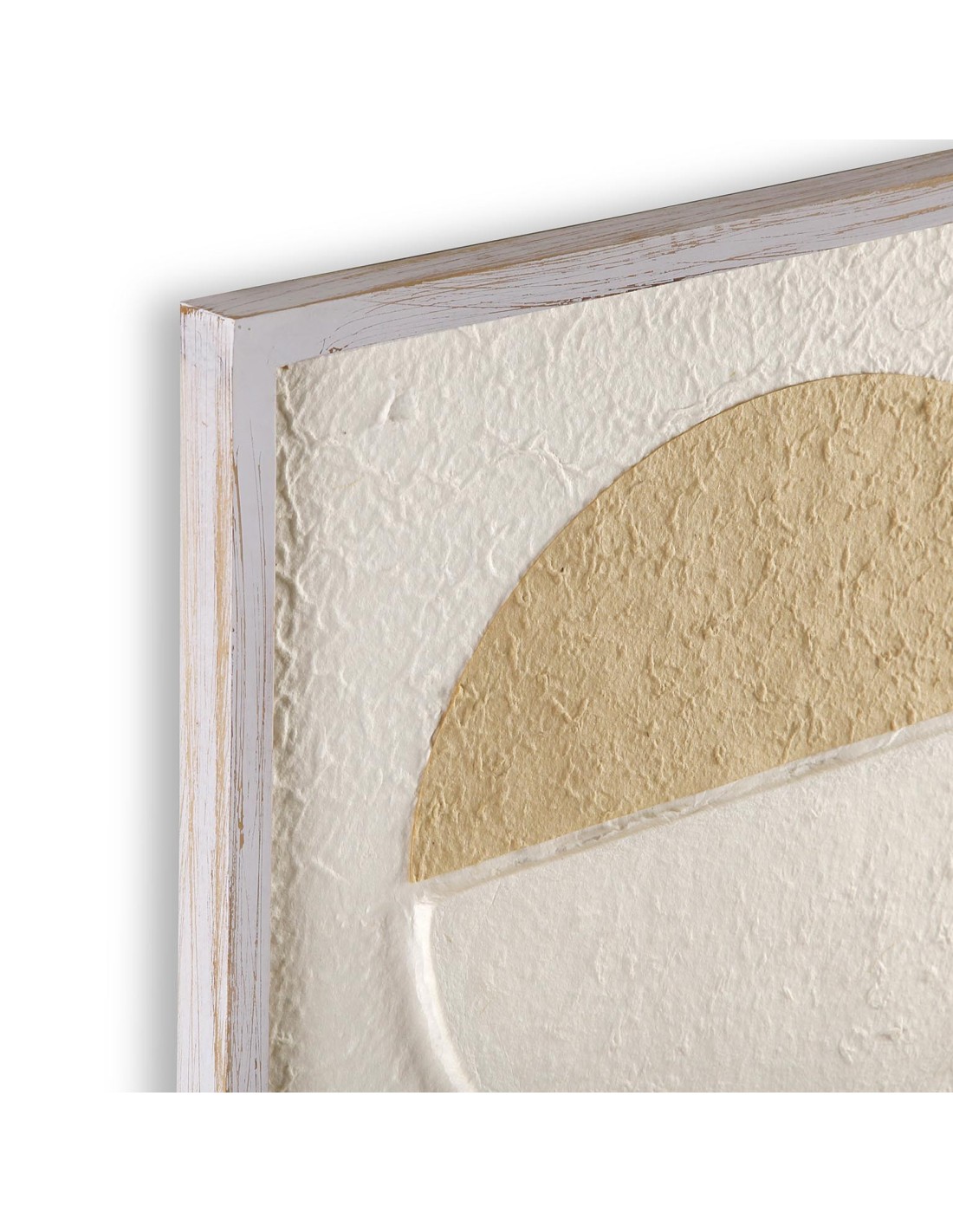 Este cuadro abstracto en relieve combina arte y textura para crear un ambiente lleno de luz y sofisticación, convirtiéndose en un elemento decorativo perfecto para realzar cualquier estancia.