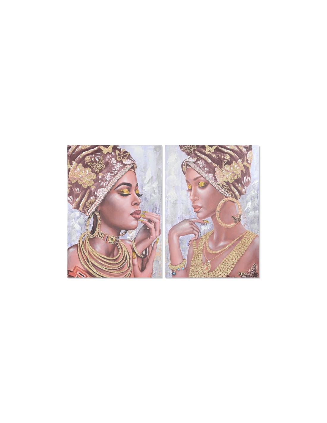 Este cuadro pintado sobre lienzo con diseño de mujer africana destaca por sus elegantes tonos dorados y sus adornos en relieve, creando una pieza decorativa llamativa y con gran personalidad. Su diseño artístico aporta un toque exótico y moderno que realza cualquier espacio del hogar.