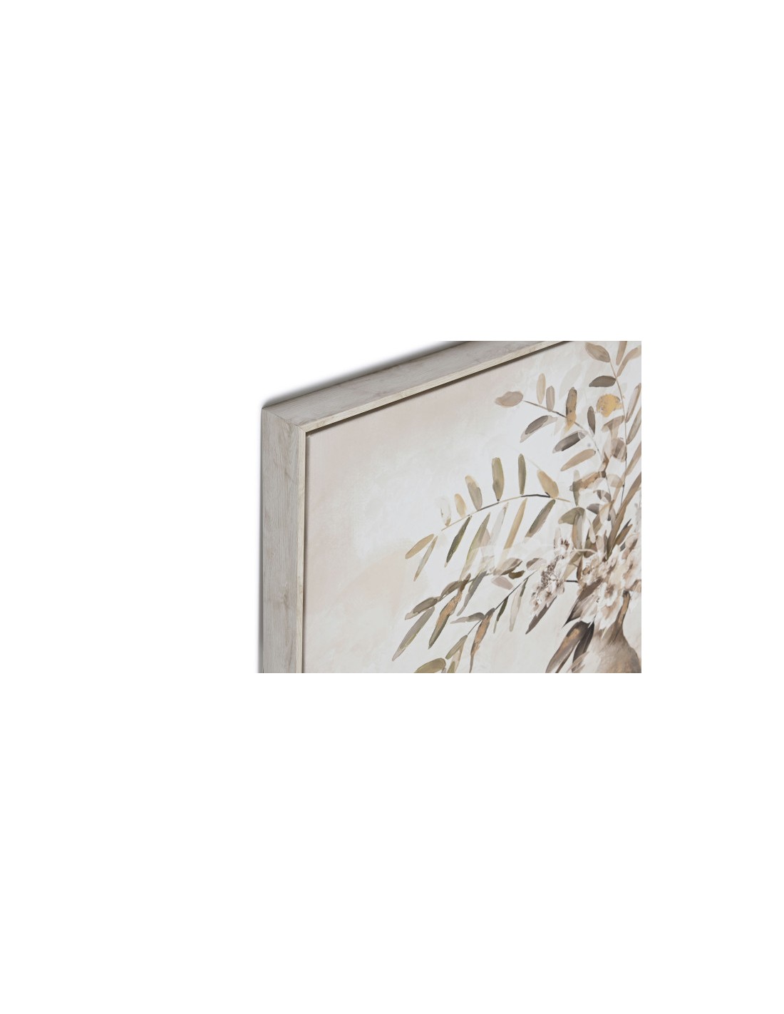 Cuadro en lienzo de jarrones con flores en tonos claros con marco de madera natural para una decoración elegante y luminosa