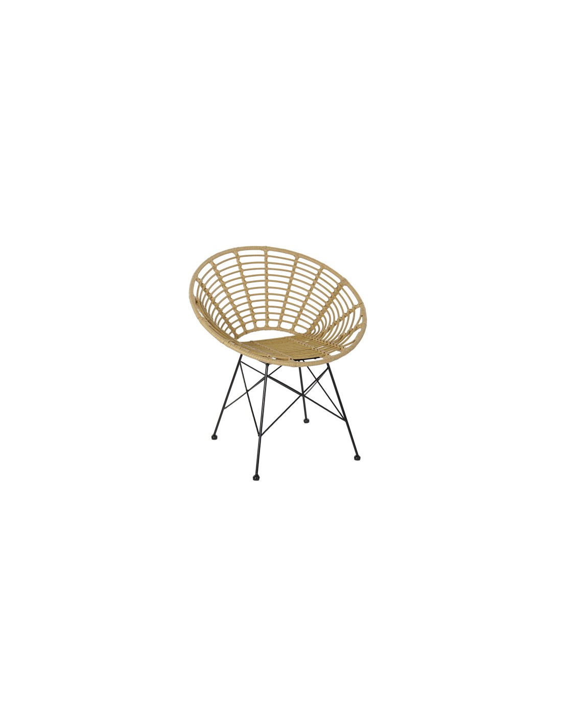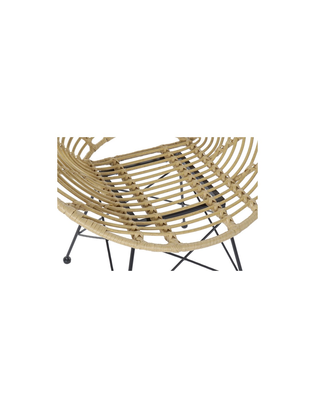 Fabricada en ratán sintético de alta calidad, ofrece una gran resistencia a las condiciones climáticas, manteniendo su apariencia intacta con el paso del tiempo. Sus patas de hierro galvanizado aportan una estructura sólida y estable, garantizando un uso seguro y duradero.
