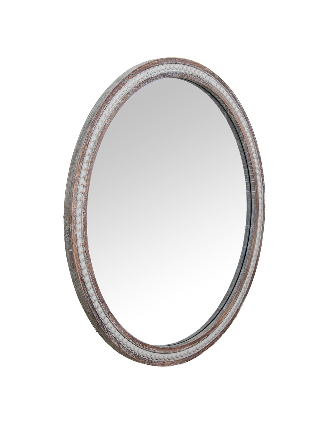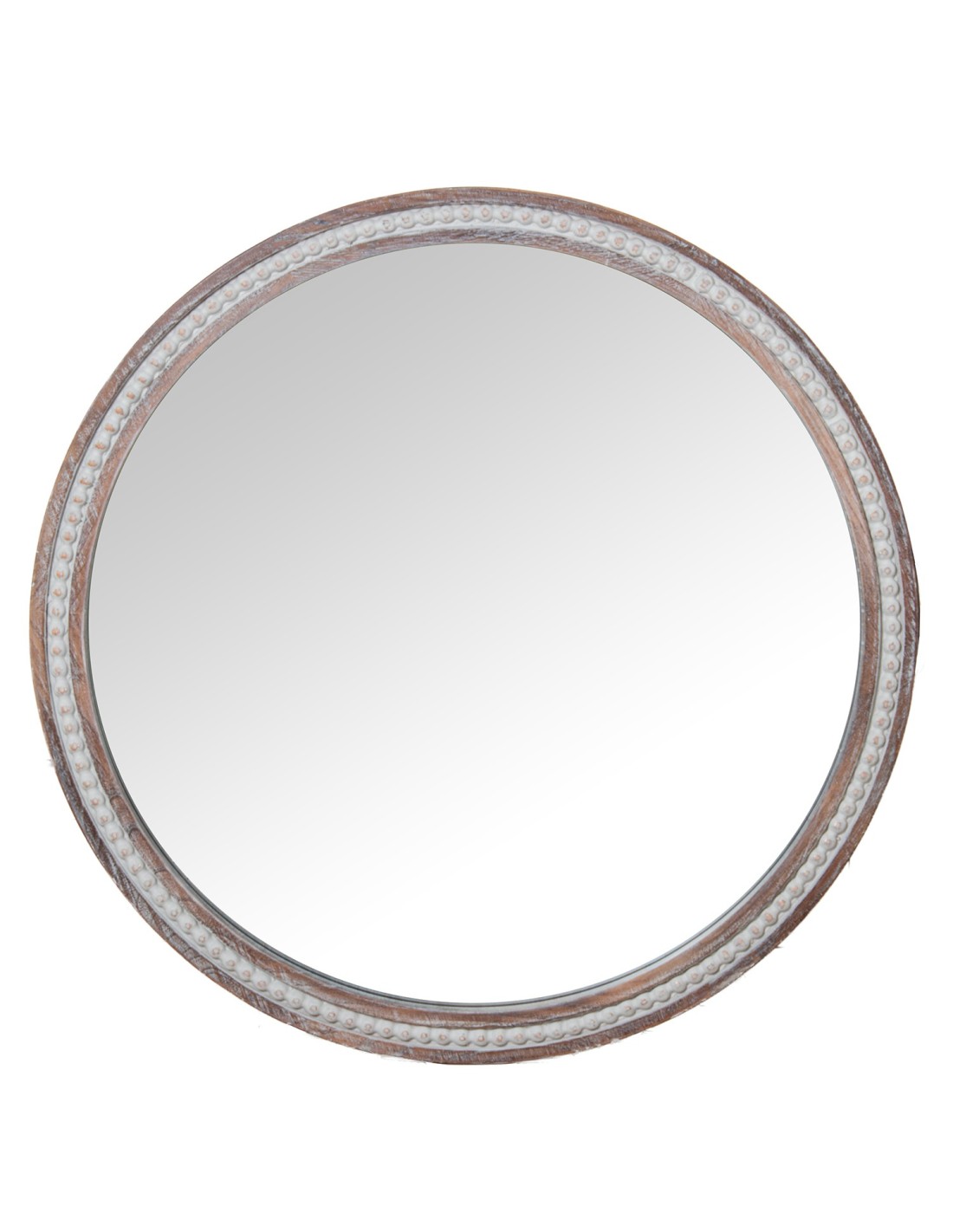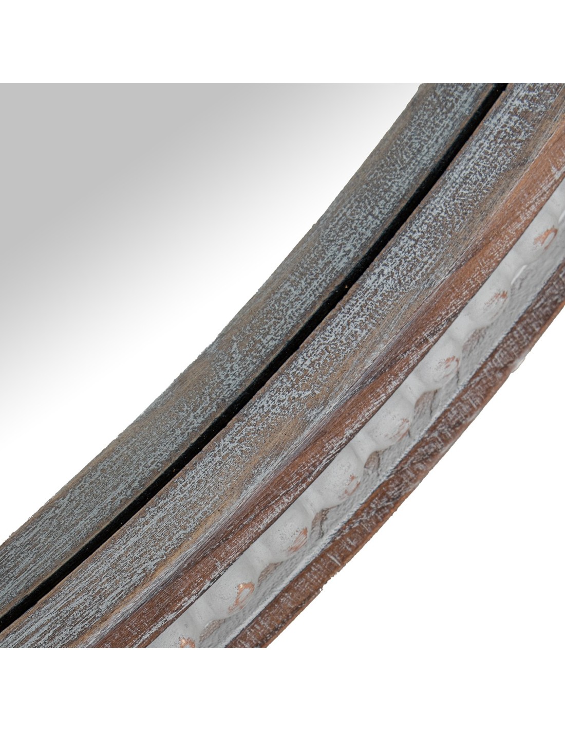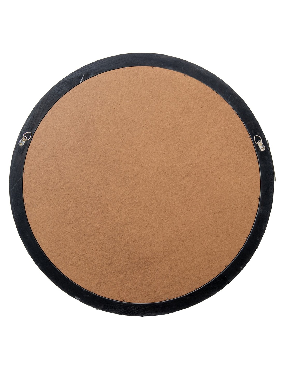 Espejo redondo fabricado en madera DM con un elegante acabado en color marrón envejecido, ideal para dar un toque cálido y sofisticado a la decoración de tu hogar.