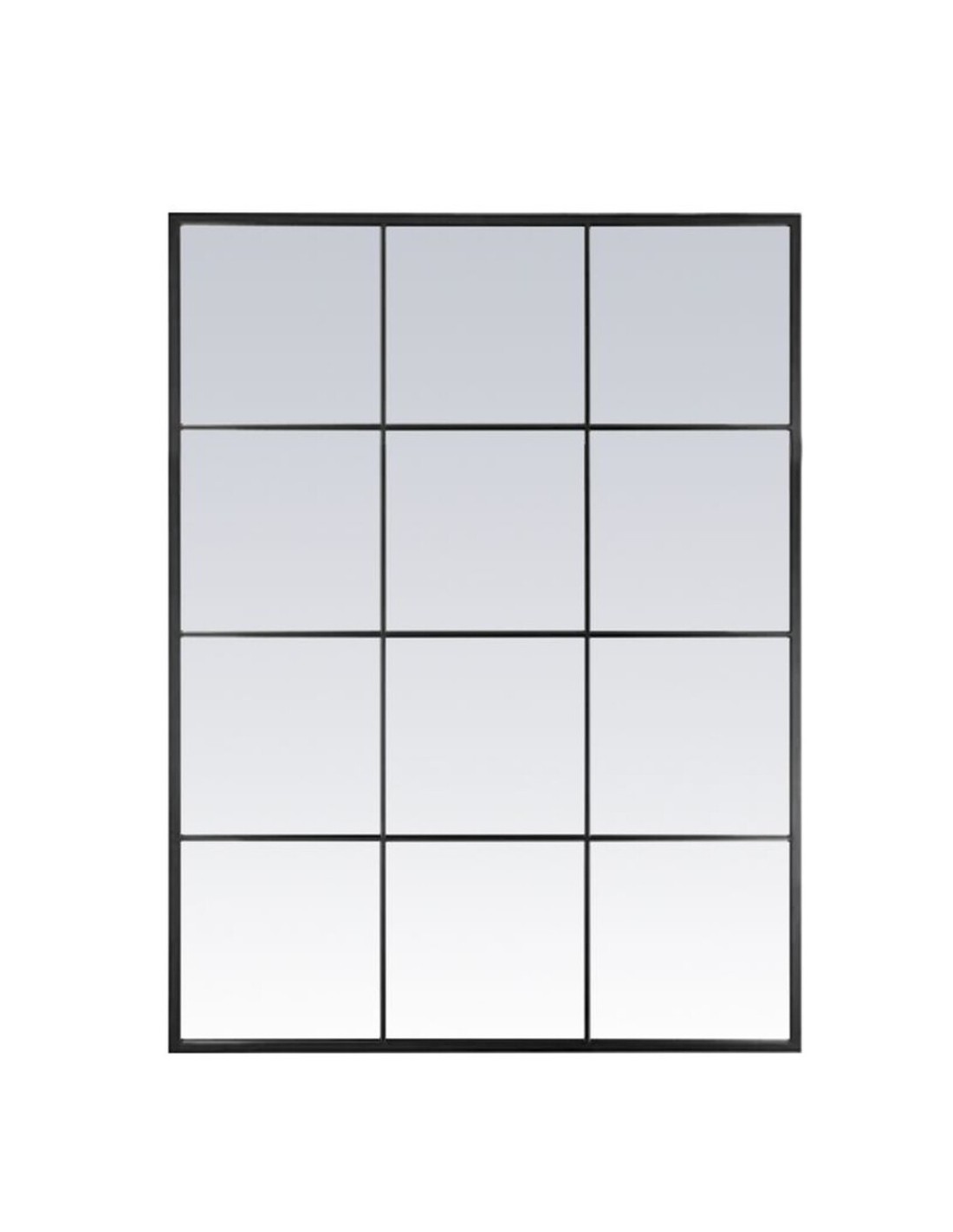 Espejo de pared fabricado en metal y pintado en color negro con un elegante diseño de cuadros. Sus medidas de 90 x 120 cm lo convierten en una pieza de gran tamaño y presencia, ideal para destacar en cualquier zona de la casa y aportar un toque moderno y sofisticado al ambiente. Su estructura metálica reforzada ofrece durabilidad, estabilidad y una estética atemporal que encaja perfectamente en estilos decorativos contemporáneos, industriales, minimalistas o incluso nórdicos. El color negro es neutro, combinable y muy fácil de integrar con muebles de cualquier tonalidad, ya sean claros, oscuros o maderas naturales.