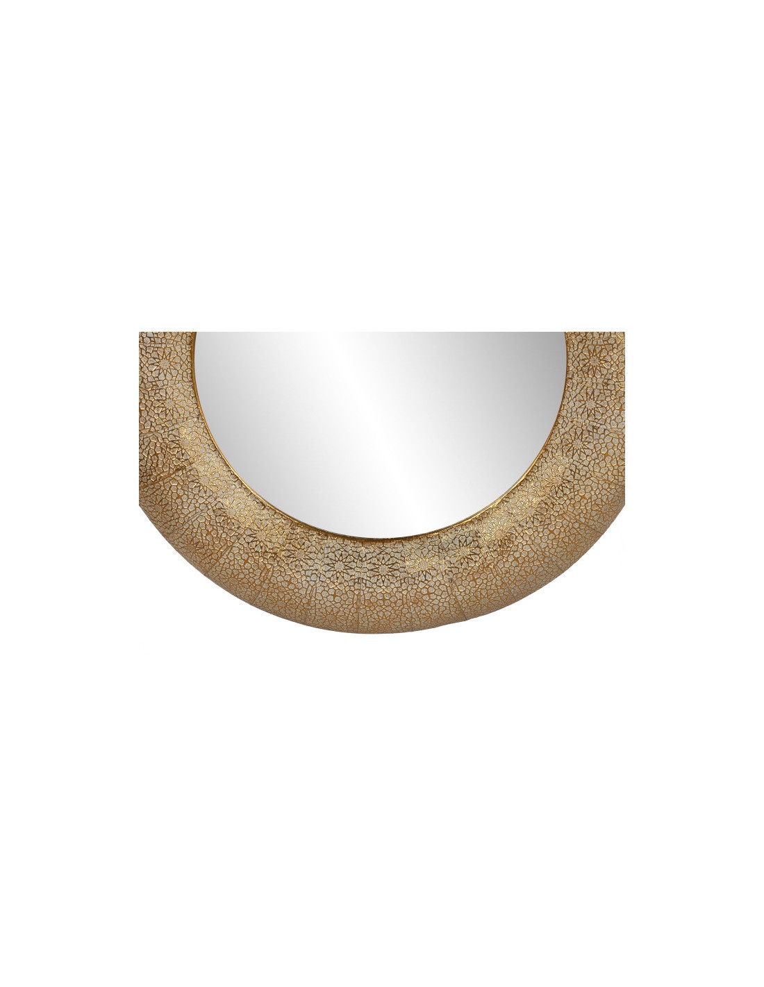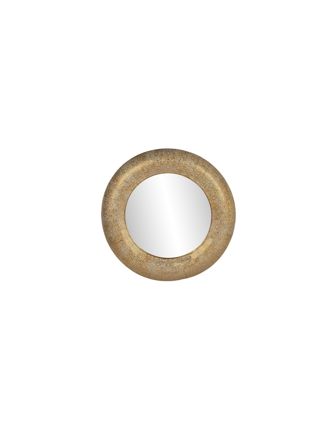 Este espejo redondo fabricado en metal pintado en color dorado con adornos en relieve es una pieza decorativa diseñada para aportar elegancia, luminosidad y estilo a cualquier pared del hogar. Con un diámetro de 80 cm y un fondo de 5,5 cm, se convierte en un elemento protagonista capaz de transformar visualmente el espacio donde se coloque.