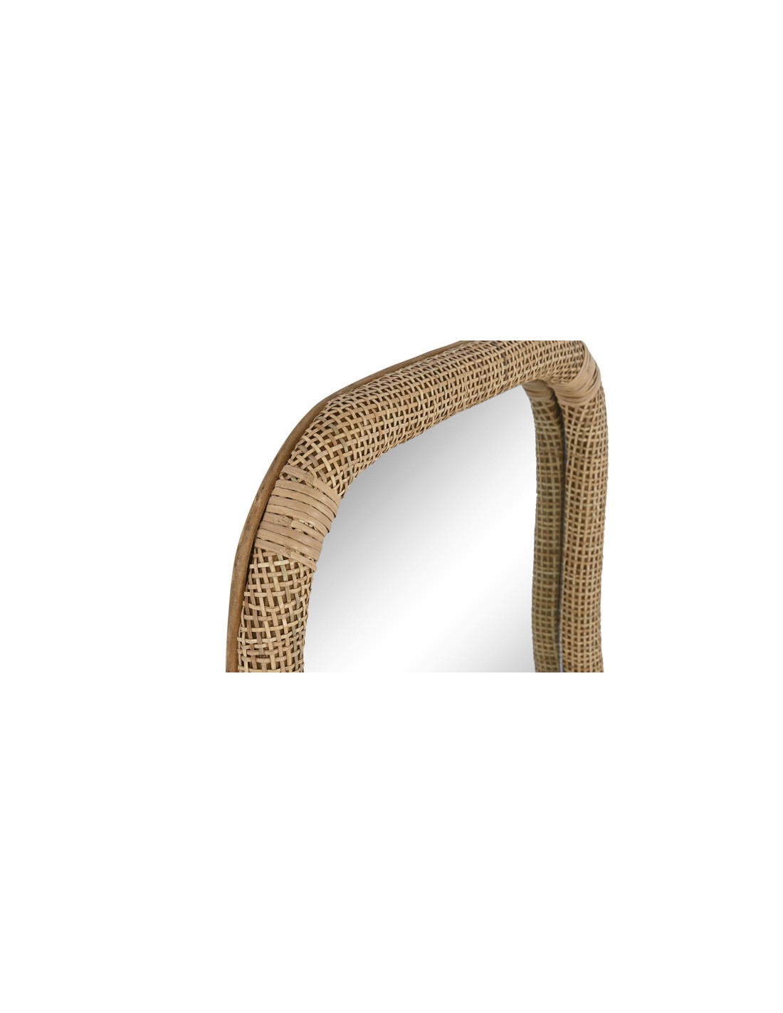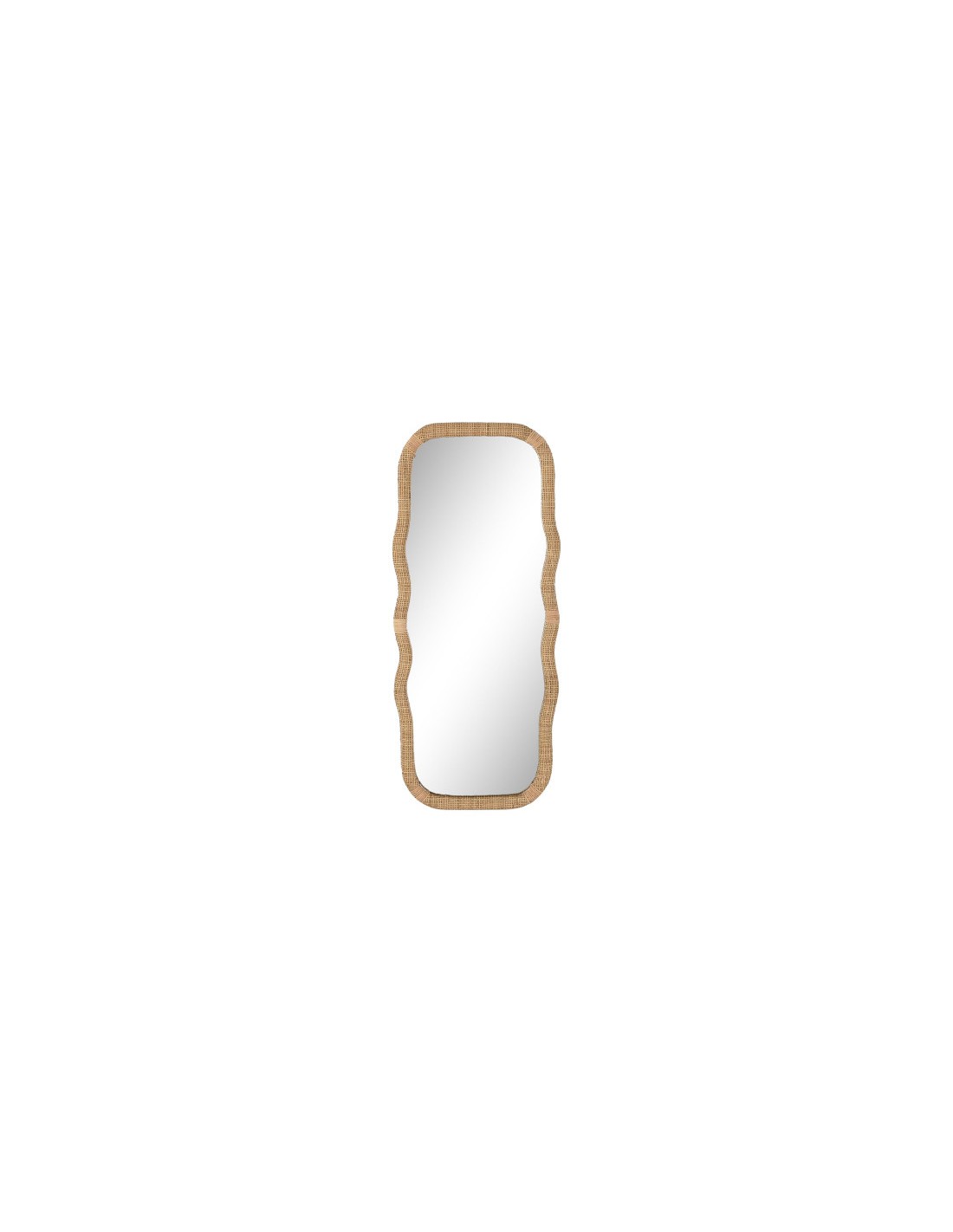 El marco de madera con detalle trenzado en ratán aporta textura y autenticidad, destacando la belleza de los materiales naturales. Con unas medidas de 49 cm de ancho y 113 cm de altura, este espejo es ideal para colocar en recibidores, dormitorios, salones o pasillos, ayudando a ampliar visualmente los espacios y reflejar la luz de forma armoniosa.