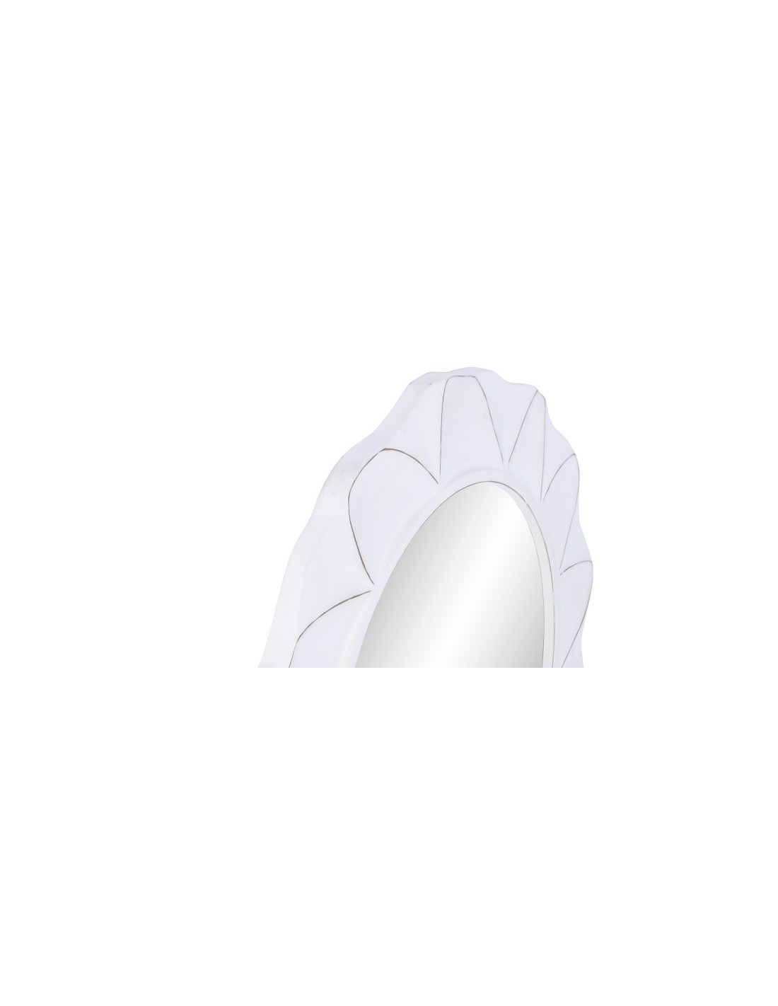 Este espejo destaca por su diseño de cristal rugoso en color blanco, que crea un efecto visual distintivo y elegante. Su estructura en MDF garantiza resistencia y estabilidad, convirtiéndolo en una opción funcional y decorativa al mismo tiempo.