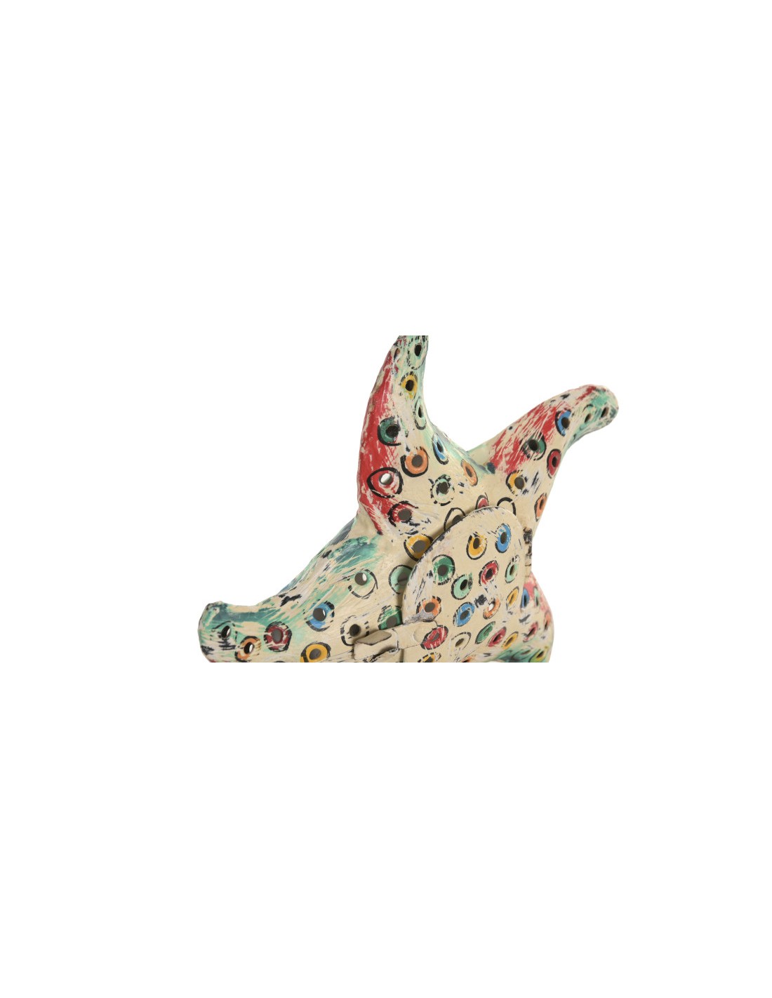 Esta figura está fabricada en hierro y presenta un diseño de estrella de mar pintada con varios colores, lo que la convierte en un elemento decorativo llamativo y lleno de vida. Su acabado combina resistencia y estética, ideal para complementar cualquier estancia.