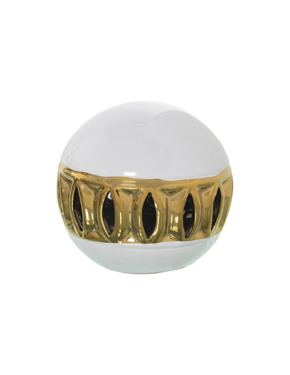 La Bola de Cerámica en Blanco y Oro es ideal para aportar estilo y personalidad a cualquier rincón del hogar.