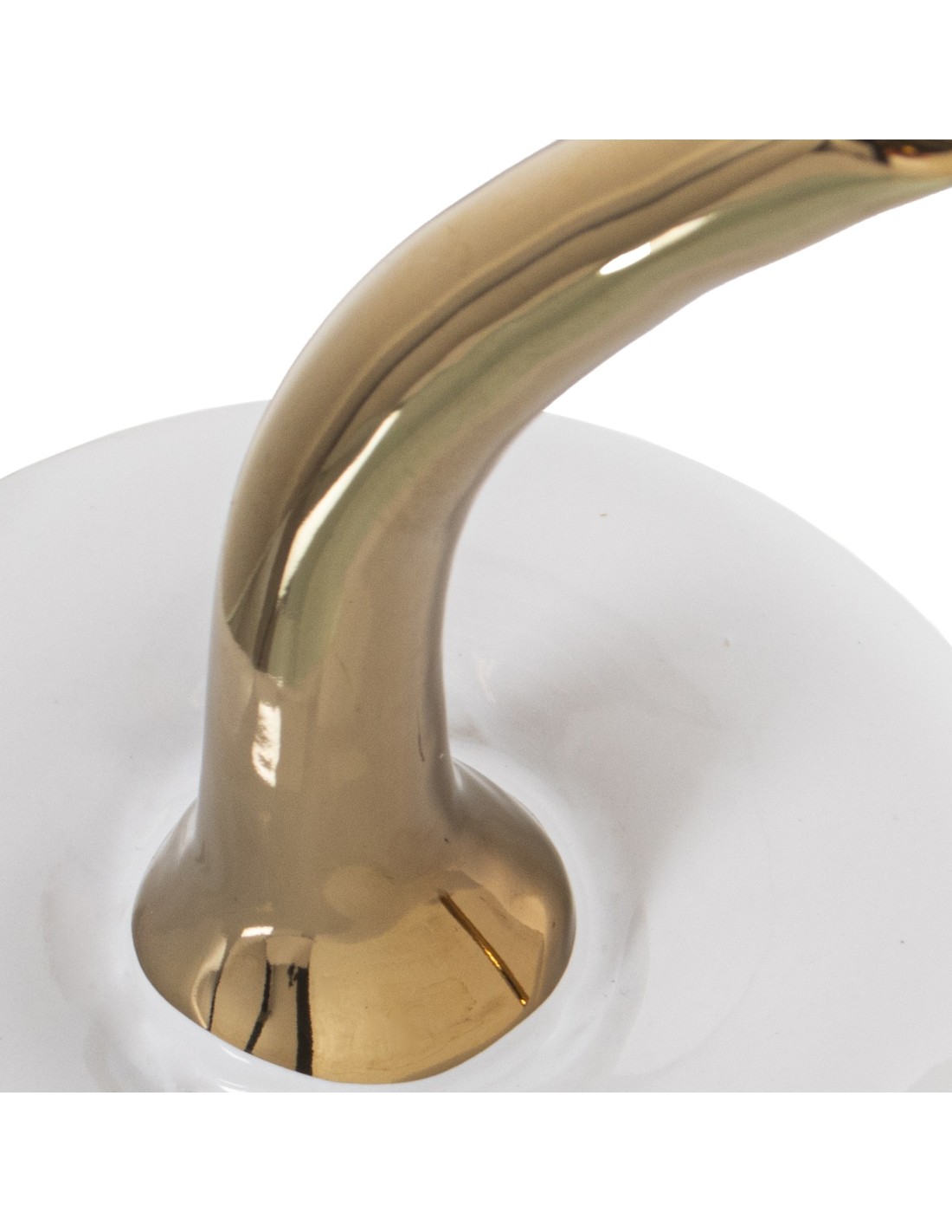 El contraste entre el color blanco de la cerámica y el rabo dorado crea un efecto visual elegante que encaja perfectamente en decoraciones modernas, minimalistas o contemporáneas.
