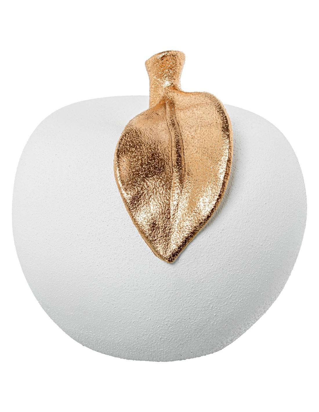 Esta figura está fabricada en cerámica y presenta un diseño original de manzana con el rabo dorado, un detalle que aporta un toque de distinción y elegancia. El contraste entre la cerámica y el acabado dorado crea un efecto visual muy atractivo que destaca dentro de cualquier composición decorativa.