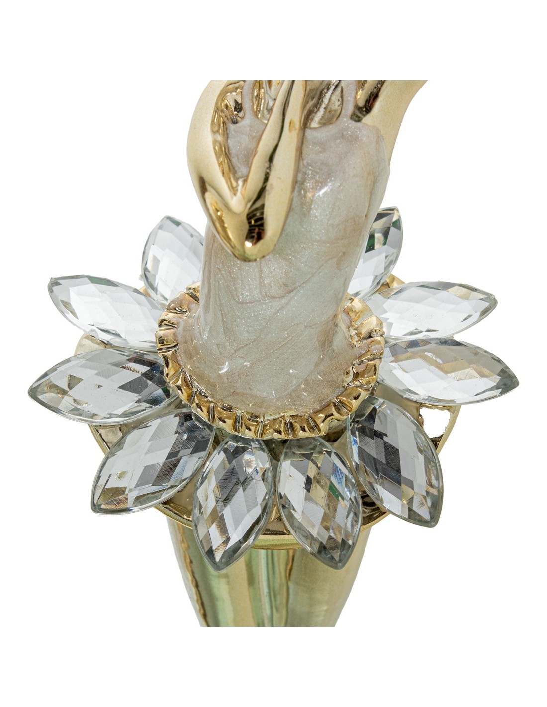 Su diseño inspirado en la danza clásica añade movimiento y sofisticación al ambiente, convirtiéndola en una pieza perfecta para salones, dormitorios, estudios o espacios dedicados a la relajación. El acabado en nacarado y cristal genera reflejos suaves que captan la luz de forma elegante, logrando que esta figura destaque sin resultar recargada.