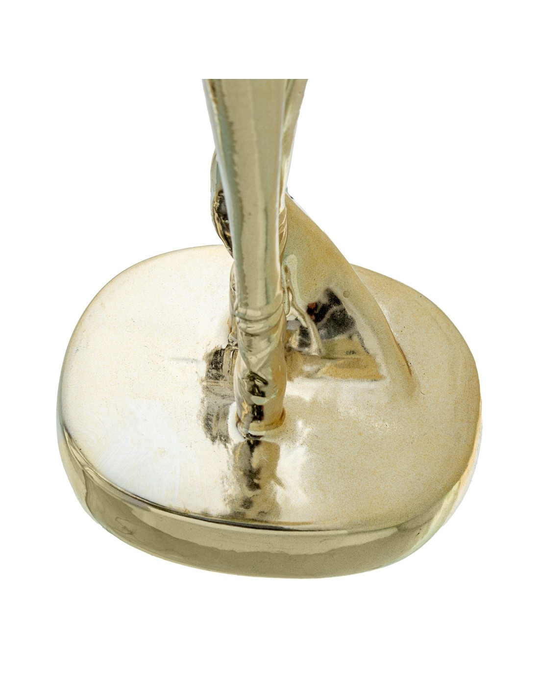 La figura de bailarina en resina dorada con traje nacarado ofrece múltiples beneficios como pieza decorativa. Su diseño elegante y detallado aporta un toque artístico que eleva la estética de cualquier estancia. La combinación de dorado, nácar y cristal crea un contraste sofisticado que atrae la atención de forma equilibrada y refinada.