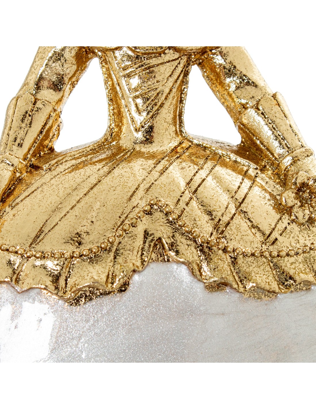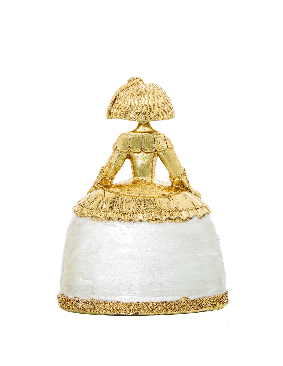 Fabricada en resina y con un acabado en tonos dorado y blanco, esta figura aporta luminosidad y un aire distinguido a cualquier espacio. Su diseño cuidado y delicado la convierte en una opción perfecta para decoraciones modernas, clásicas o contemporáneas.