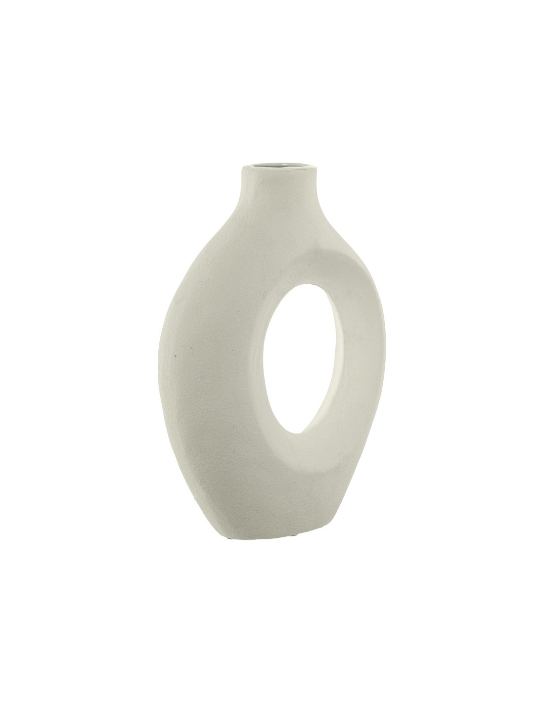 El Jarrón de Cerámica 31cm Blanco Mate es una pieza decorativa con un diseño moderno y refinado. Su acabado en blanco mate y su elegante apertura en el centro lo convierten en un complemento ideal para cualquier espacio con un estilo contemporáneo y minimalista.