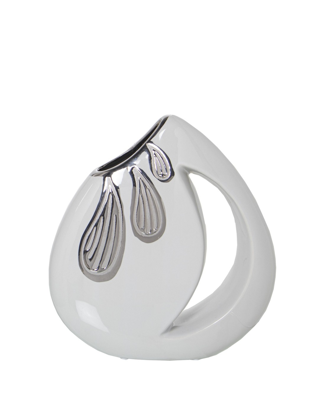 Jarrón de Cerámica Blanco con Adornos en Plata – Diseño elegante para tu hogar con Jarrón cerámica blanco y plata pequeño.