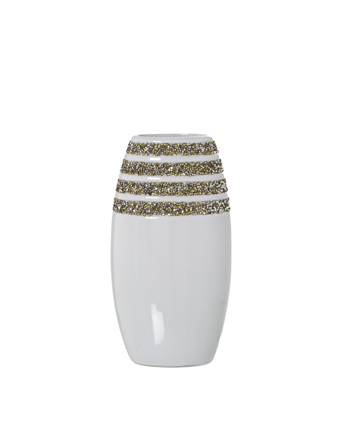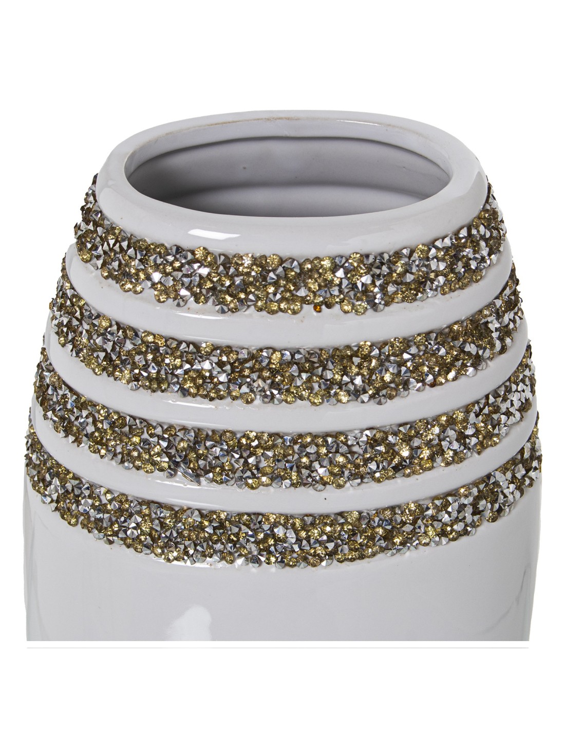 " Compra Jarrón fabricado en cerámica y pintado en color blanco con adorno de cristales en color blanco y dorado en Córdoba "