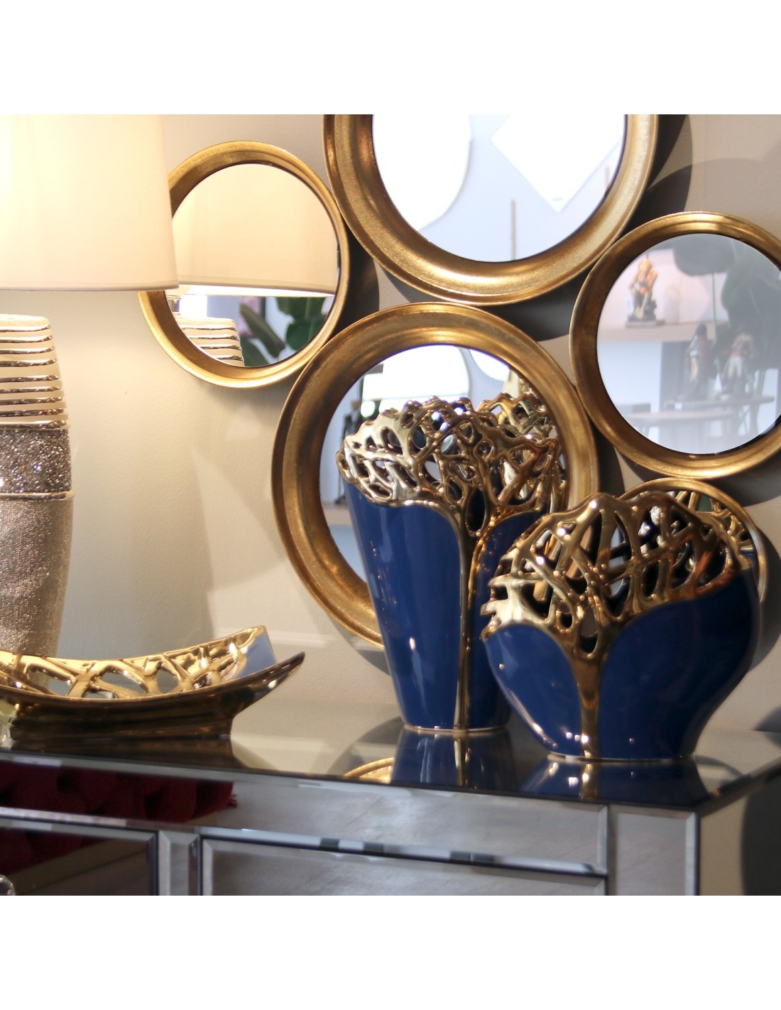 En resumen, este jarrón de cerámica calado en azul y dorado es una pieza decorativa única que aportará estilo, luz y personalidad a cualquier rincón de tu hogar.
