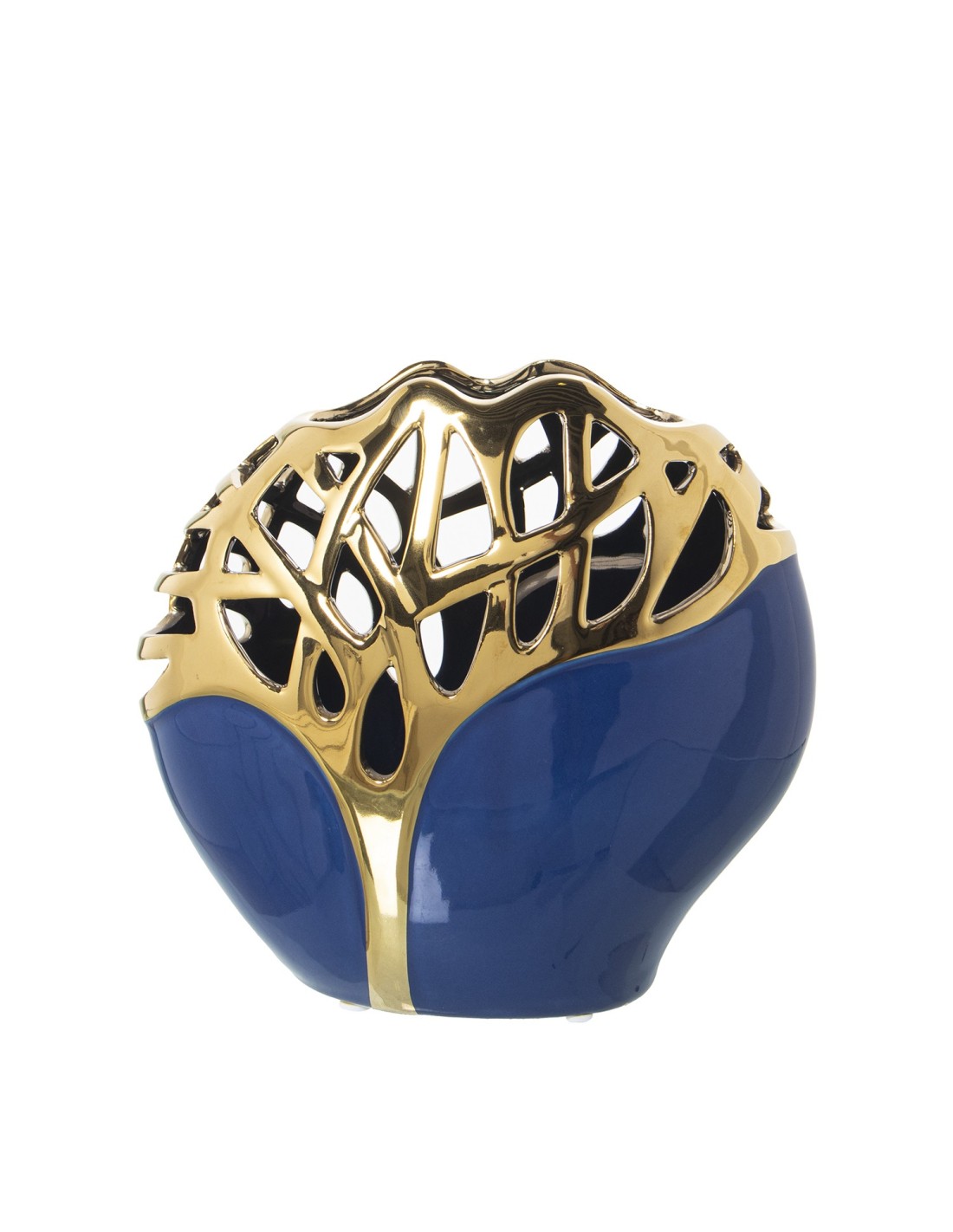 Jarrón de cerámica azul dorado bajo para una decoración con estilo