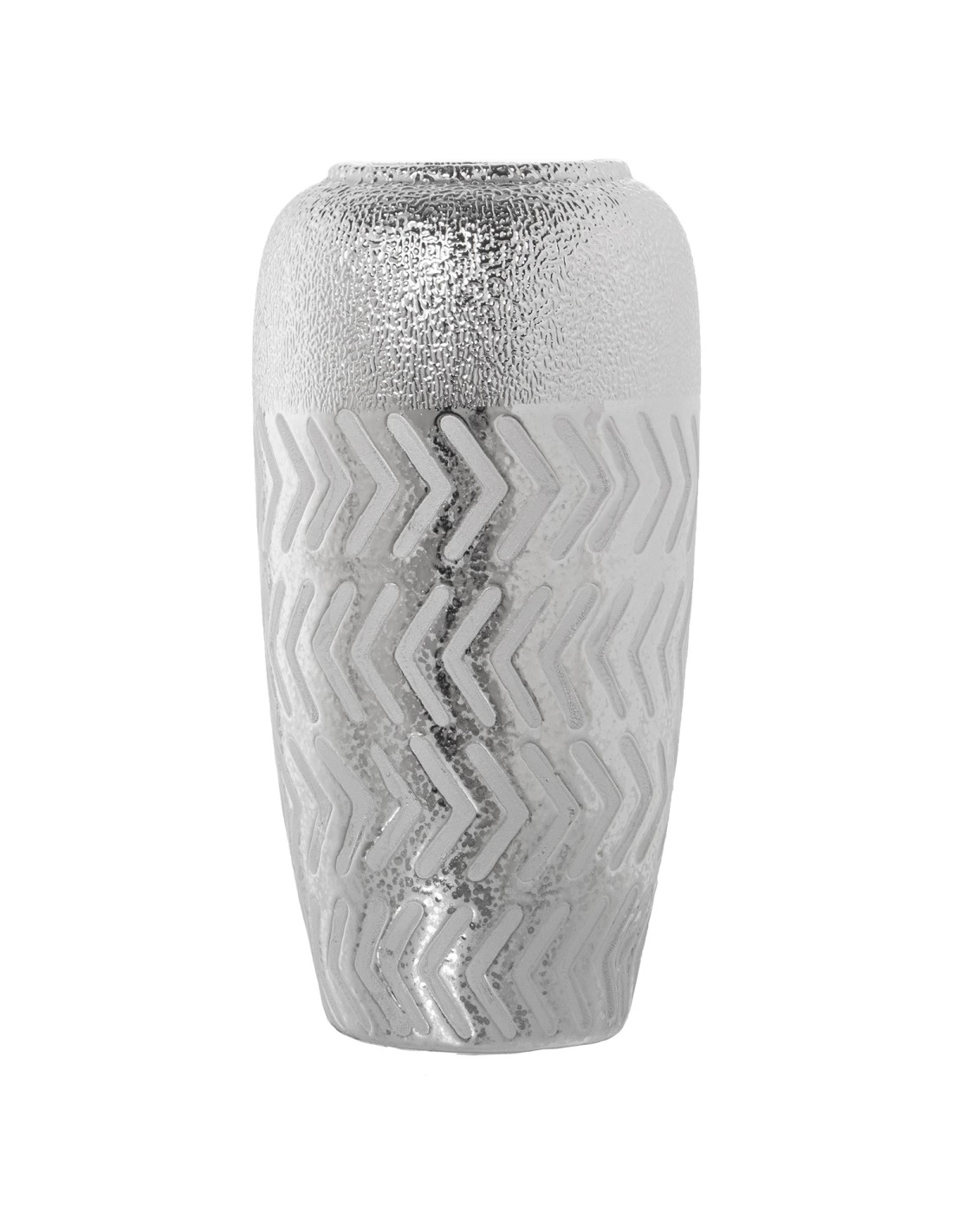 Jarrón de cerámica en color plata con diseño de rayas en brillo y Jarrón cerámica plata grande para una decoración sofisticada