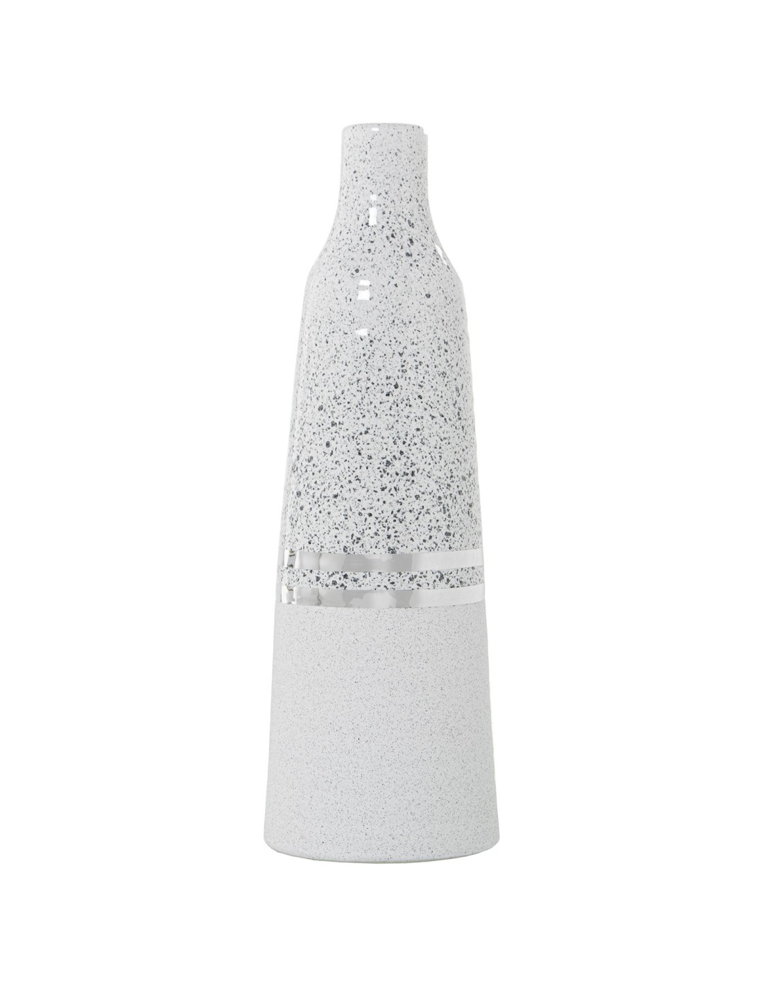 Jarrón de cerámica de boca estrecha en color blanco con adornos en plateado para una decoración elegante y sofisticada