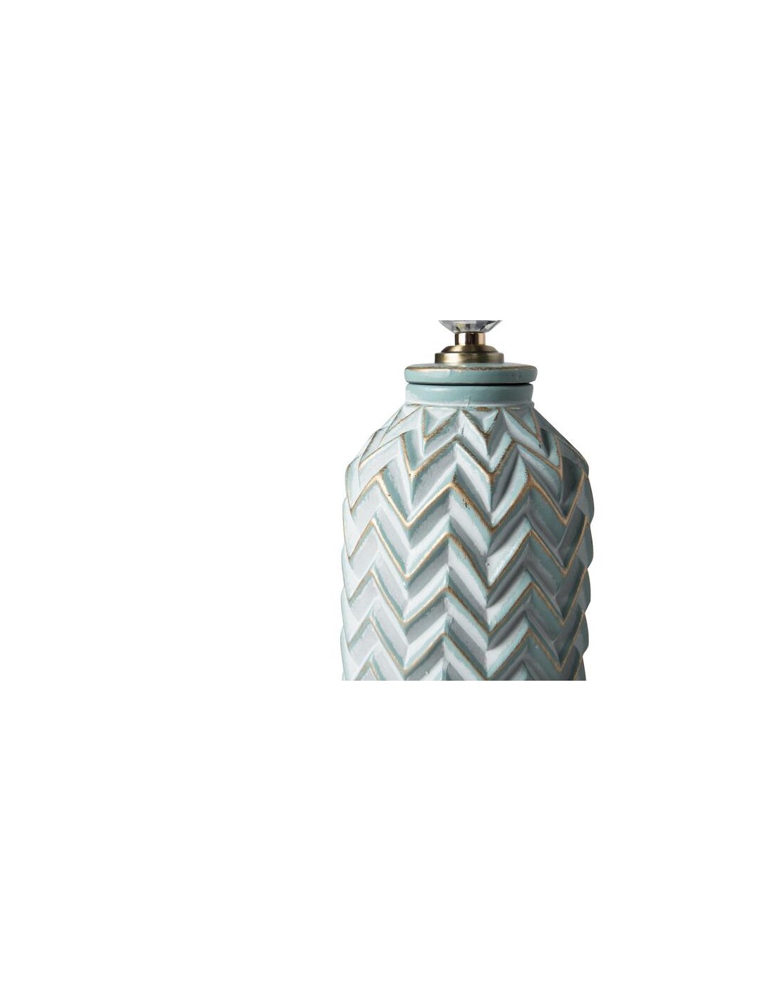 Este elegante jarrón decorativo con diseño tipo tibor está fabricado en cerámica de alta calidad en color verde, decorado con refinados adornos en dorado y una tapa con detalle de cristal que aporta un acabado sofisticado y distinguido.