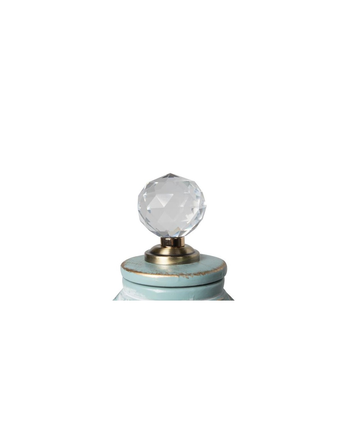 La tapa con adorno de cristal añade un toque distintivo y sofisticado, convirtiéndolo en una pieza decorativa muy versátil y atractiva.