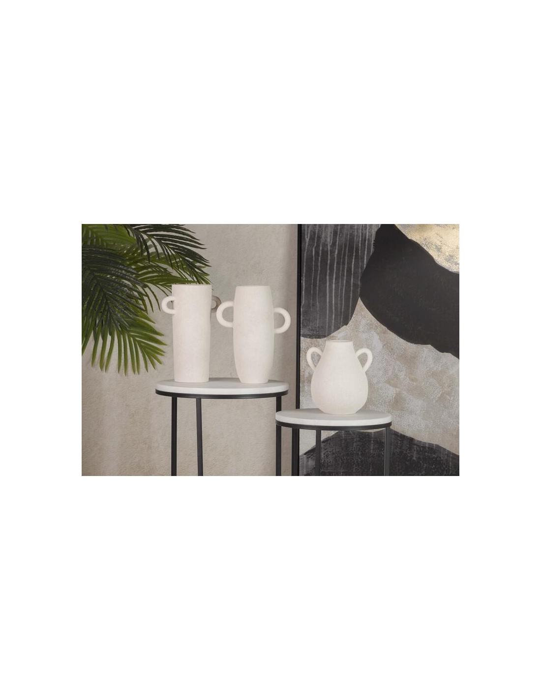 El Jarrón de cerámica beige con asas es perfecto para decorar salones, dormitorios, recibidores o incluso oficinas, aportando siempre un toque moderno y elegante.