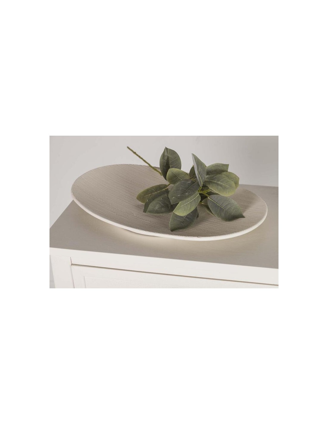 El Centro de mesa de cerámica en beige destaca por su formato bajo y alargado, ideal para decorar mesas sin recargar el espacio visual. Su diseño permite crear composiciones elegantes que aportan personalidad a cualquier estancia.