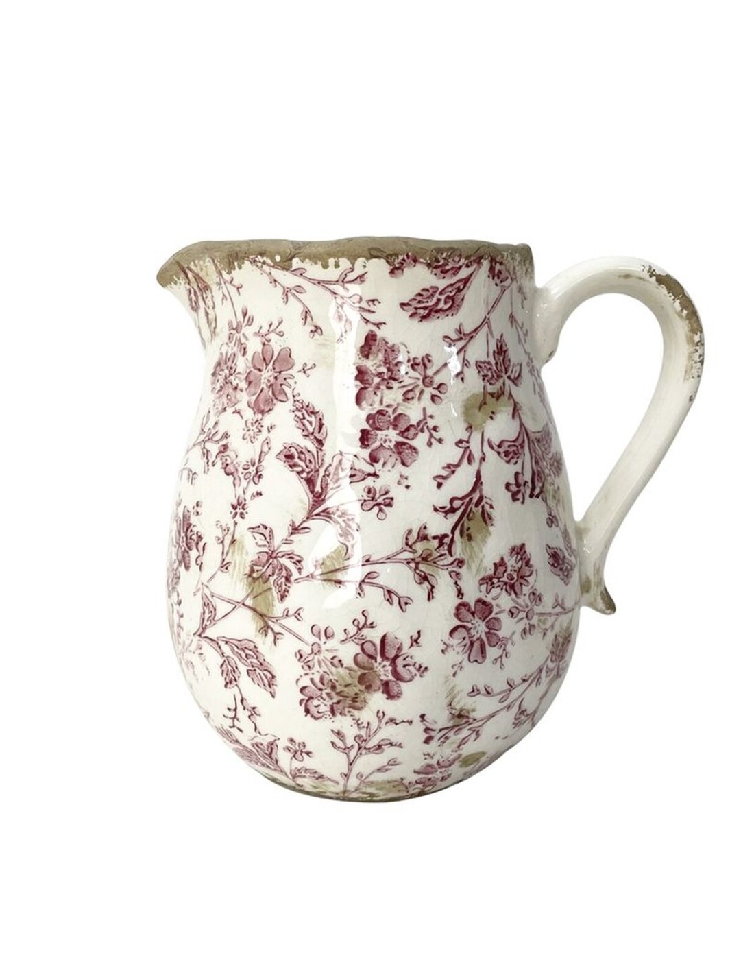 Este jarrón destaca por su diseño en forma de jarra y su bonito estampado de flores rojas, que añade un toque de color y vitalidad. Su acabado en cerámica aporta calidad y un estilo atemporal que encaja en diferentes ambientes.