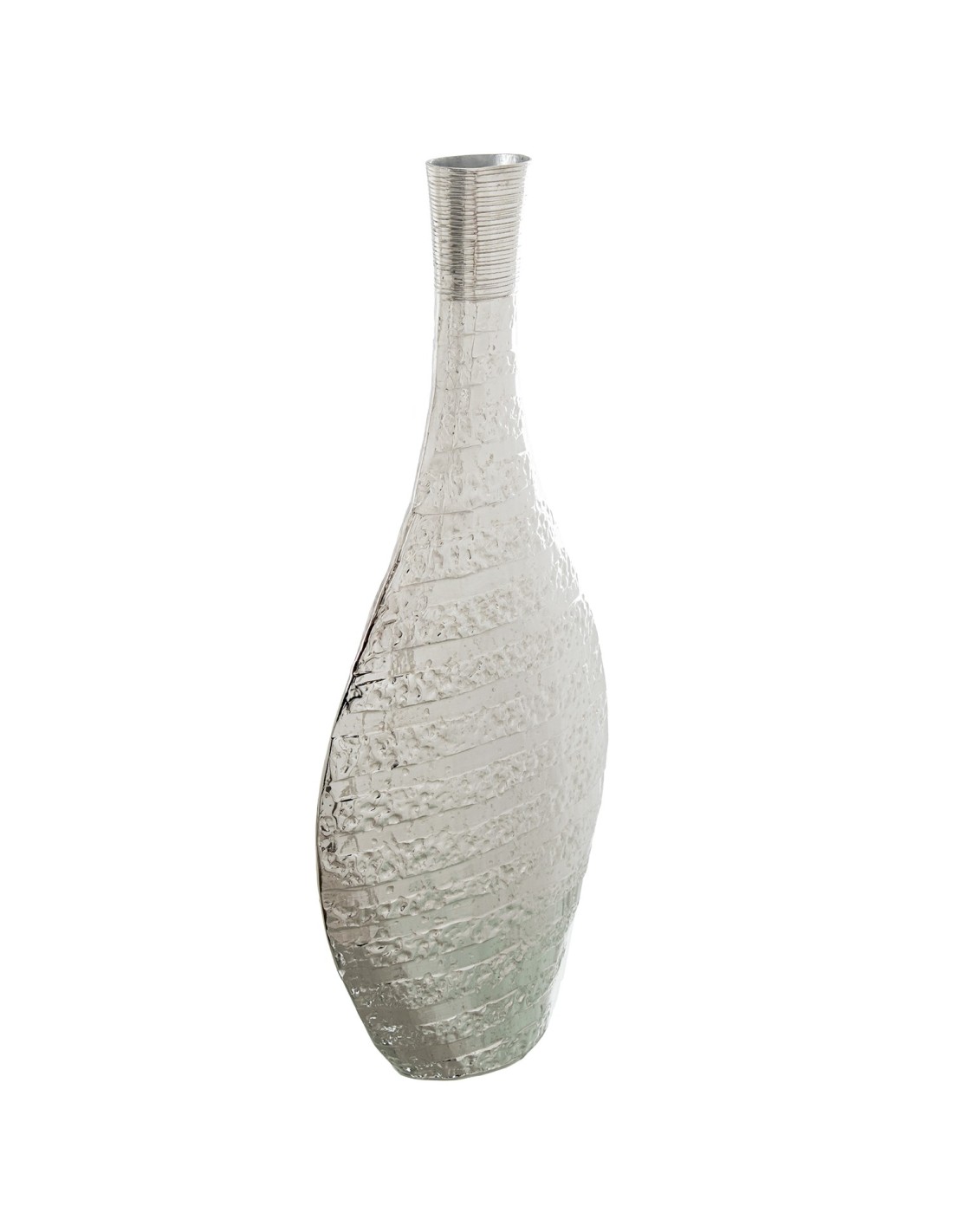 Realza tus espacios con nuestro Jarrón de Aluminio Plata con Decoraciones en Brillo – Jarrón de aluminio grande en color plata.