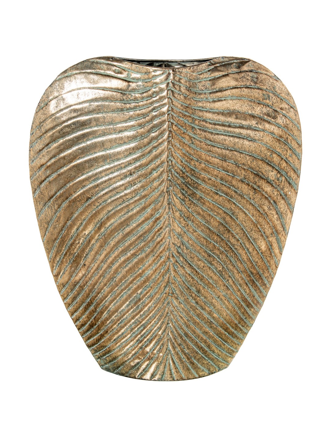 Jarrón metal dorado grande envejecido con diseño floral para una decoración elegante y con carácter