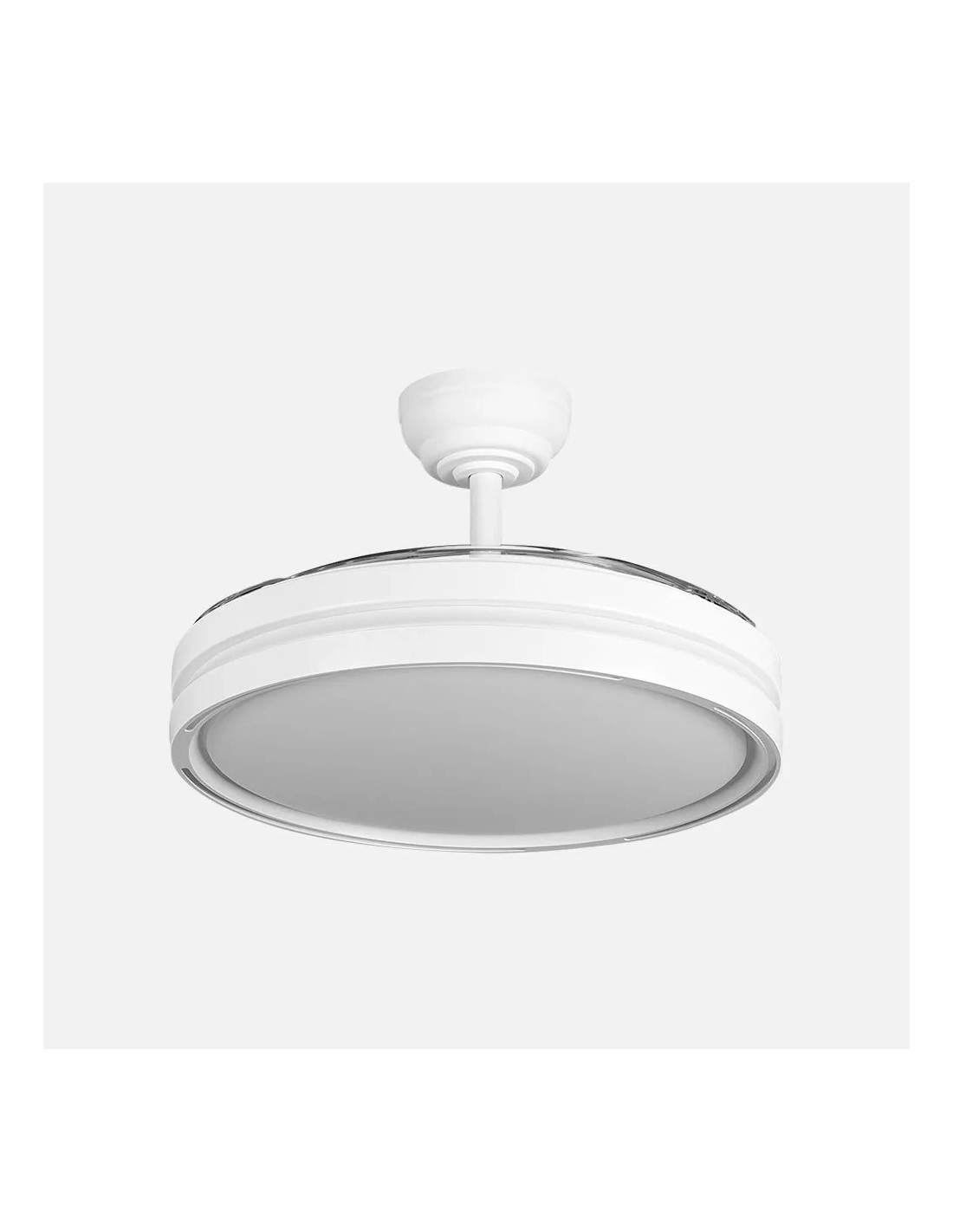 El diseño con aspas desplegables transparentes aporta un acabado moderno y elegante, integrándose fácilmente en decoraciones contemporáneas, minimalistas o modernas. Todo se controla cómodamente mediante el mando a distancia incluido.