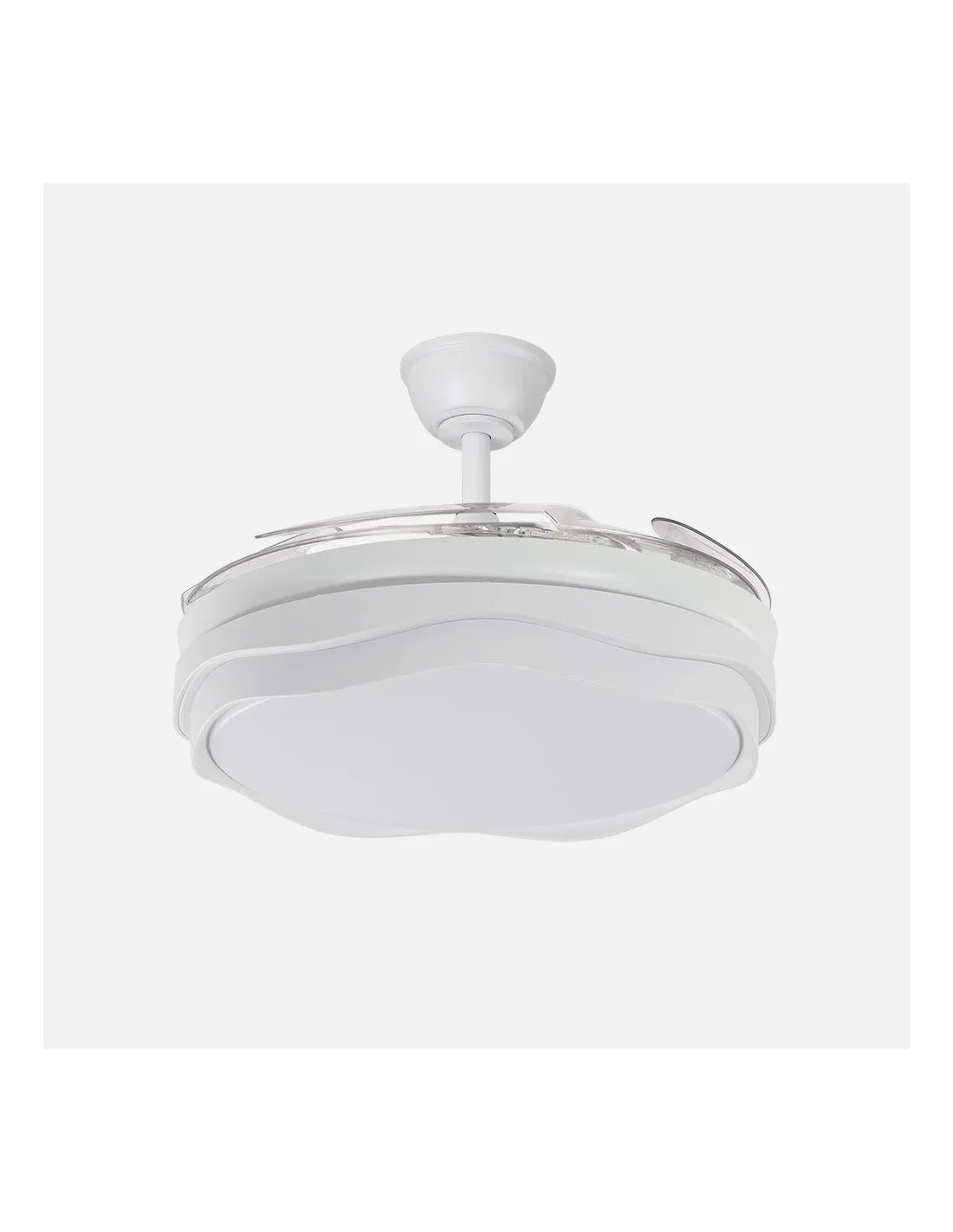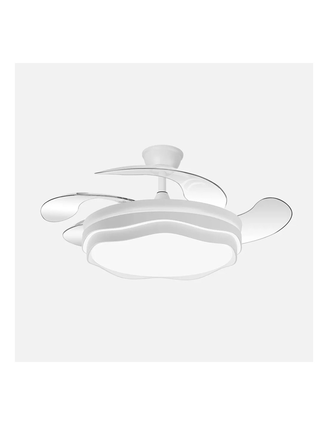 Lampara ventilador nasim blanco con luz LED y motor DC silencioso, diseño moderno y funcional
