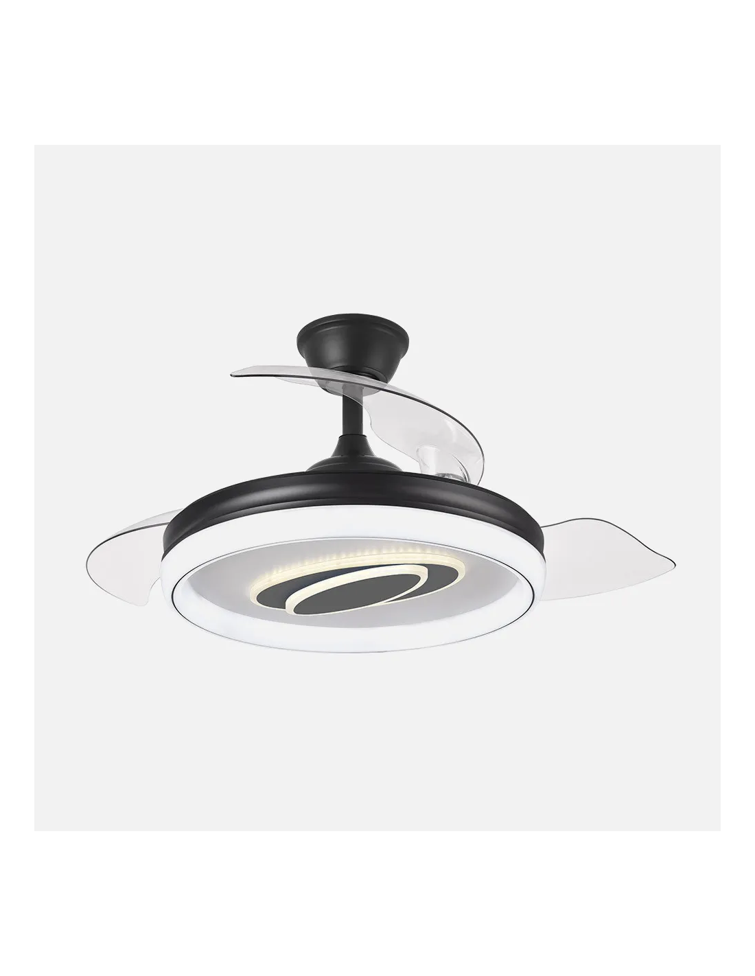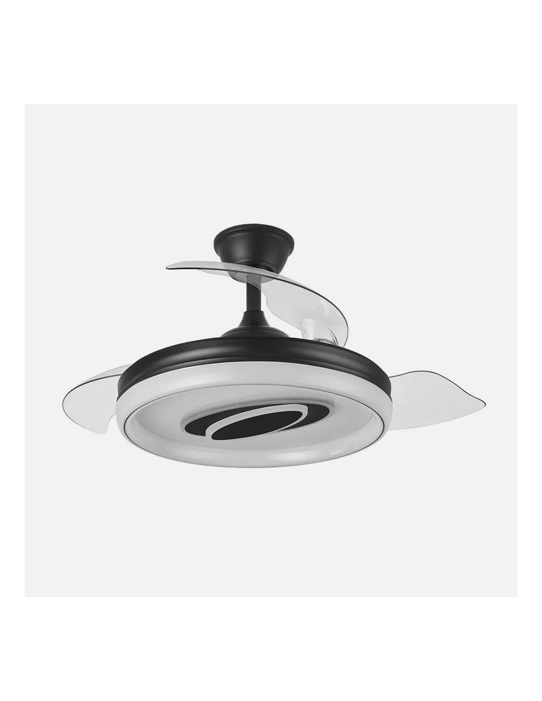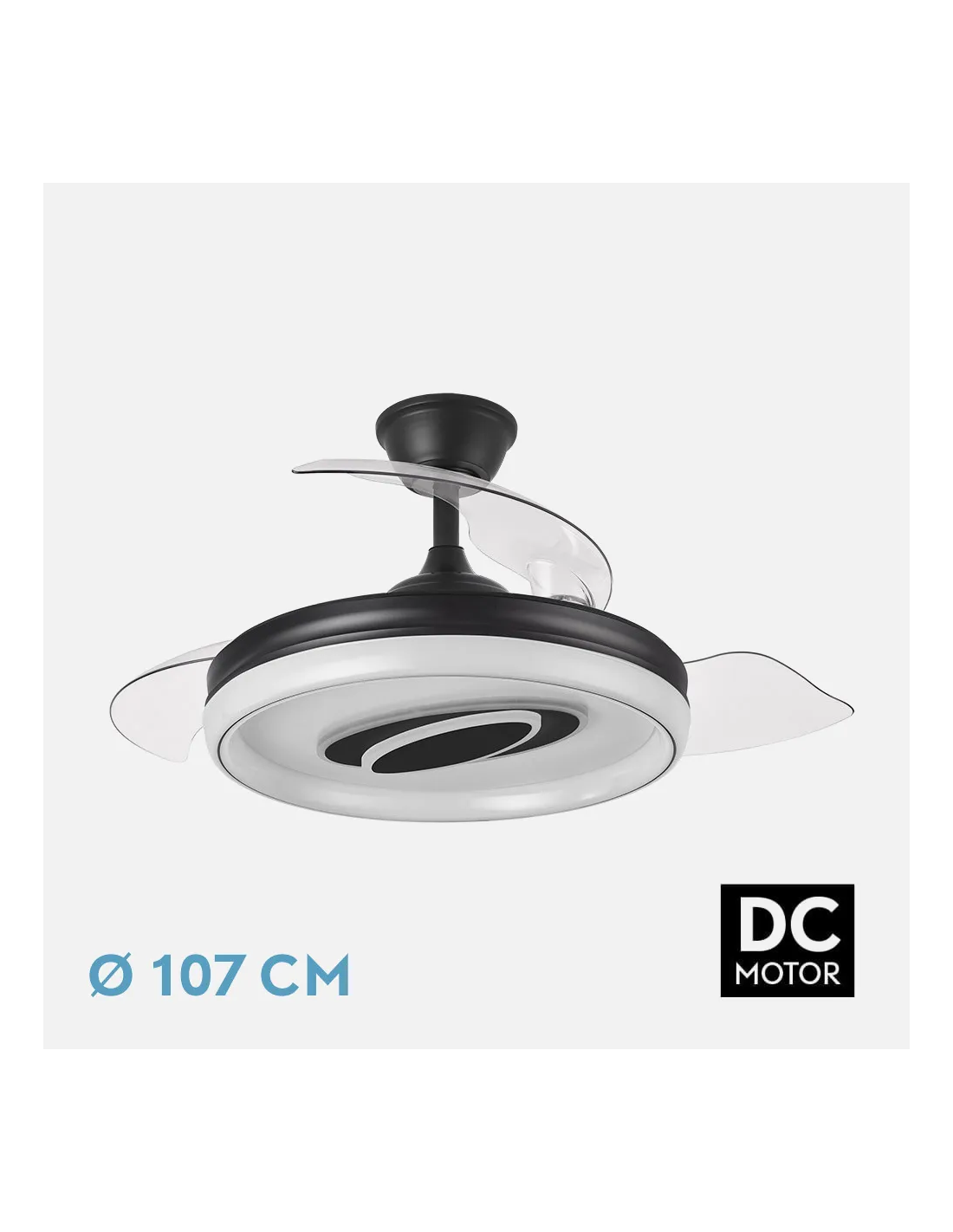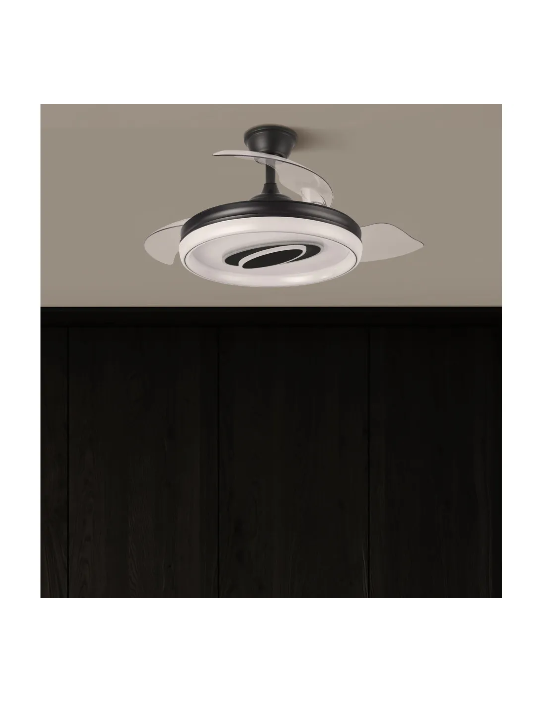 Este modelo destaca por su elegante acabado en color negro, ideal para crear espacios sofisticados, modernos e incluso con un toque industrial. Su diseño minimalista y sus aspas retráctiles lo convierten en una pieza discreta cuando no está en uso y funcional cuando lo necesitas.