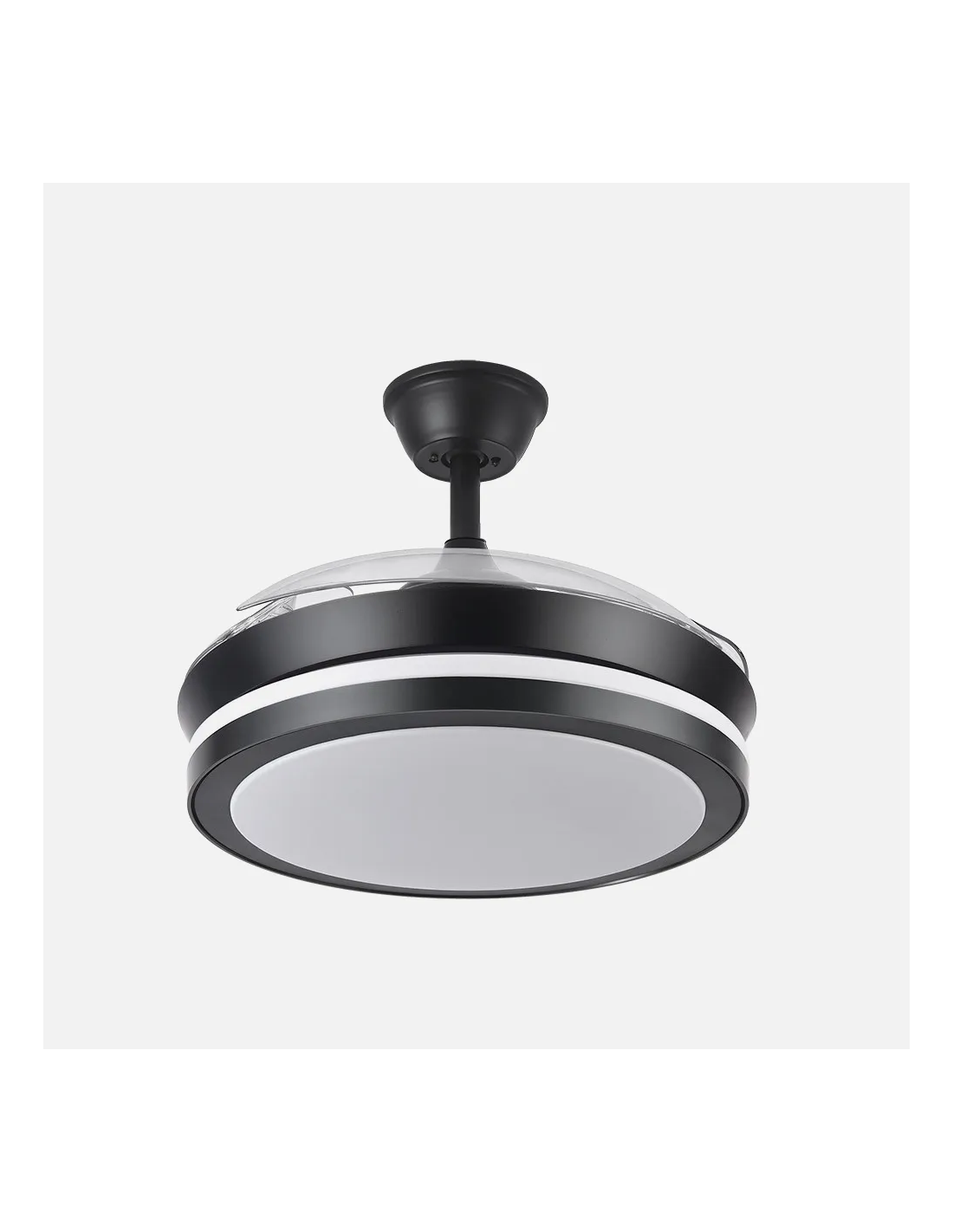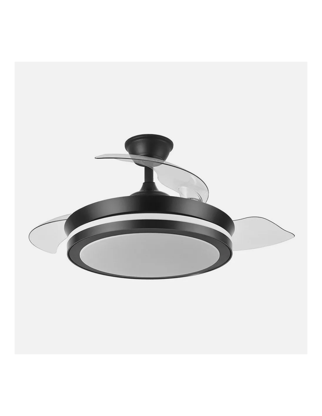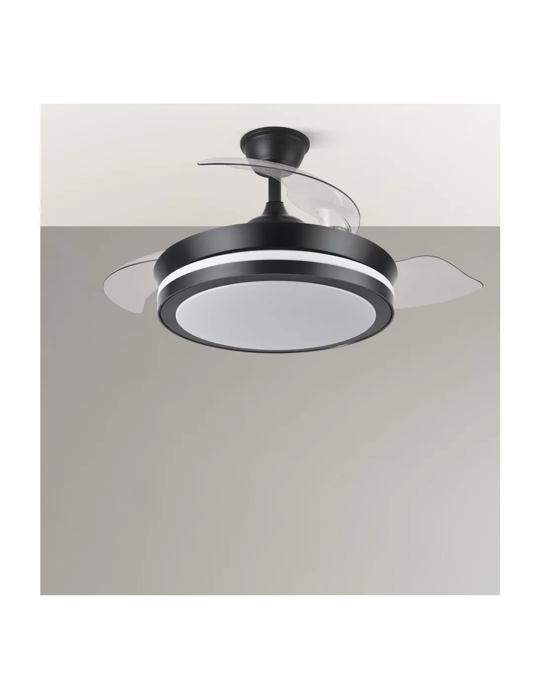 Su acabado en color negro aporta elegancia y carácter, convirtiéndolo en una pieza decorativa ideal para ambientes contemporáneos, industriales o minimalistas. Gracias a sus aspas retráctiles, mantiene una apariencia limpia y discreta cuando no está en funcionamiento.