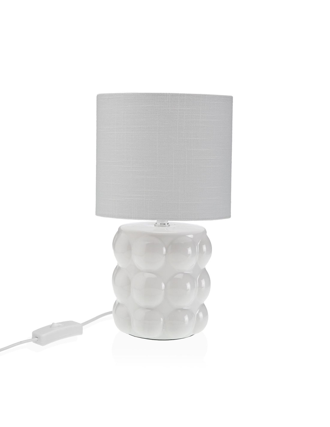 Lampara de cerámica blanca con pantalla con diseño burbuja 17x30 cm
