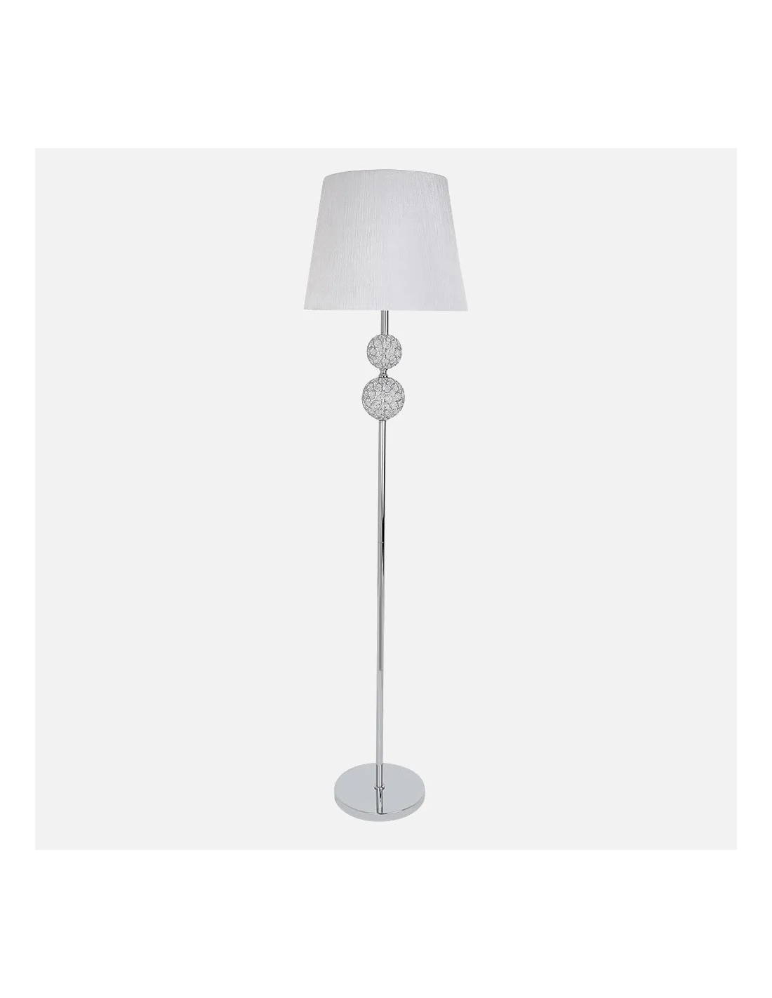 Esta lámpara destaca por su pantalla blanca, que difunde la luz de manera suave y uniforme, creando espacios cálidos y agradables. Su base en color plata añade un toque moderno que combina fácilmente con diferentes estilos decorativos.