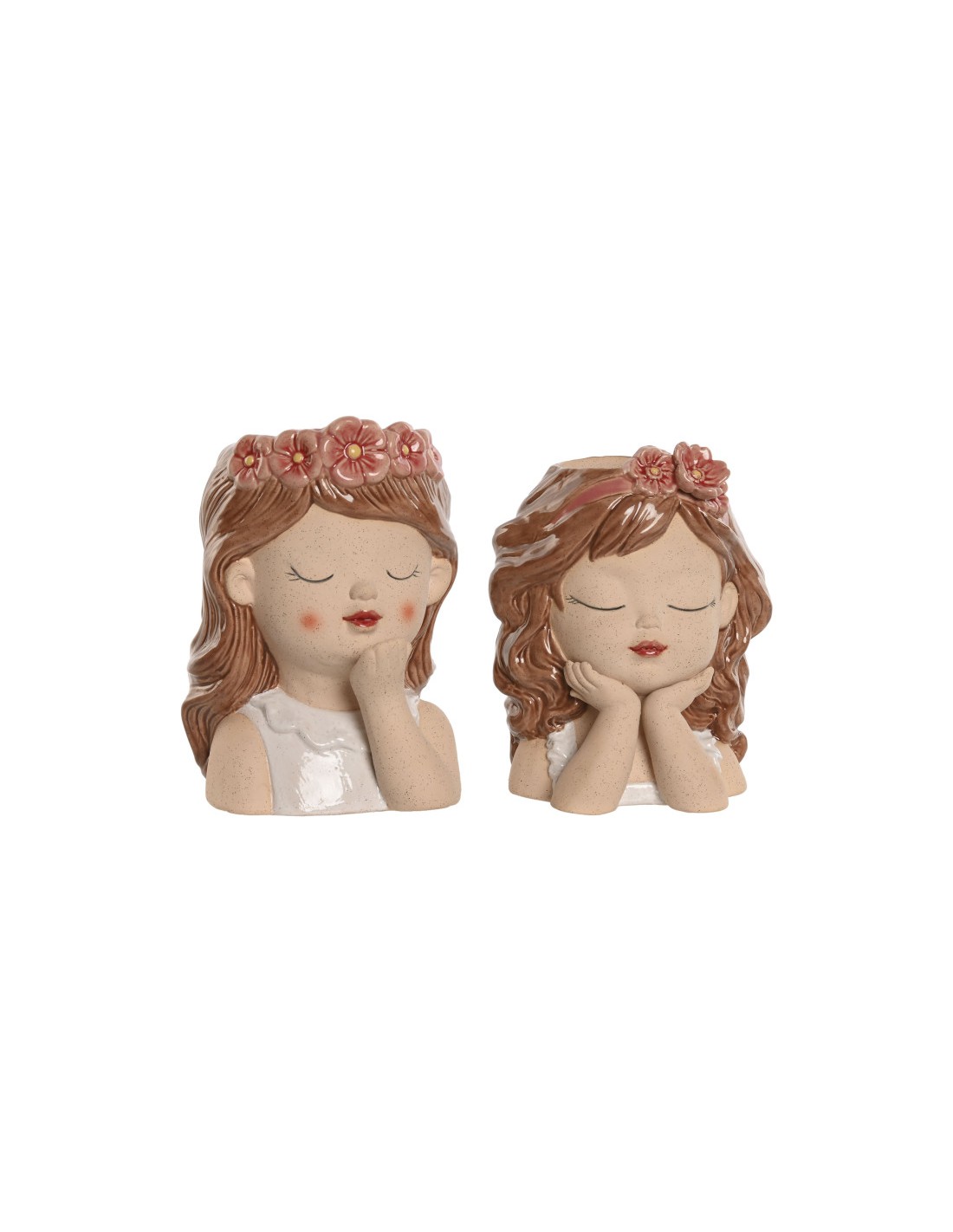 Macetero cerámica chica con diseño de mujer para una decoración original y con estilo