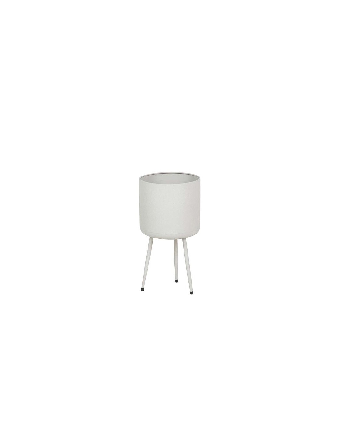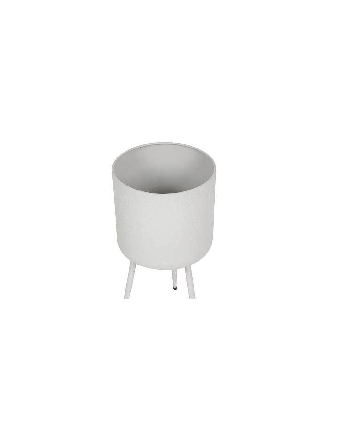 Macetero metal con patas blanco mediano con diseño rugoso y patas elevadas